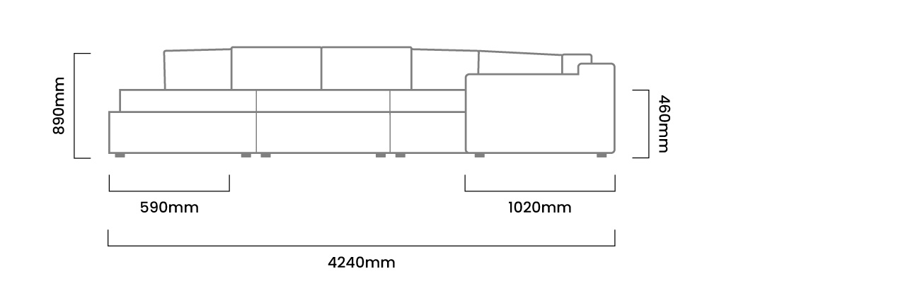 4240mm (L) x 2180mm (W) x 890mm (H) | Seat Height 460mm | Seat Depth 590mm