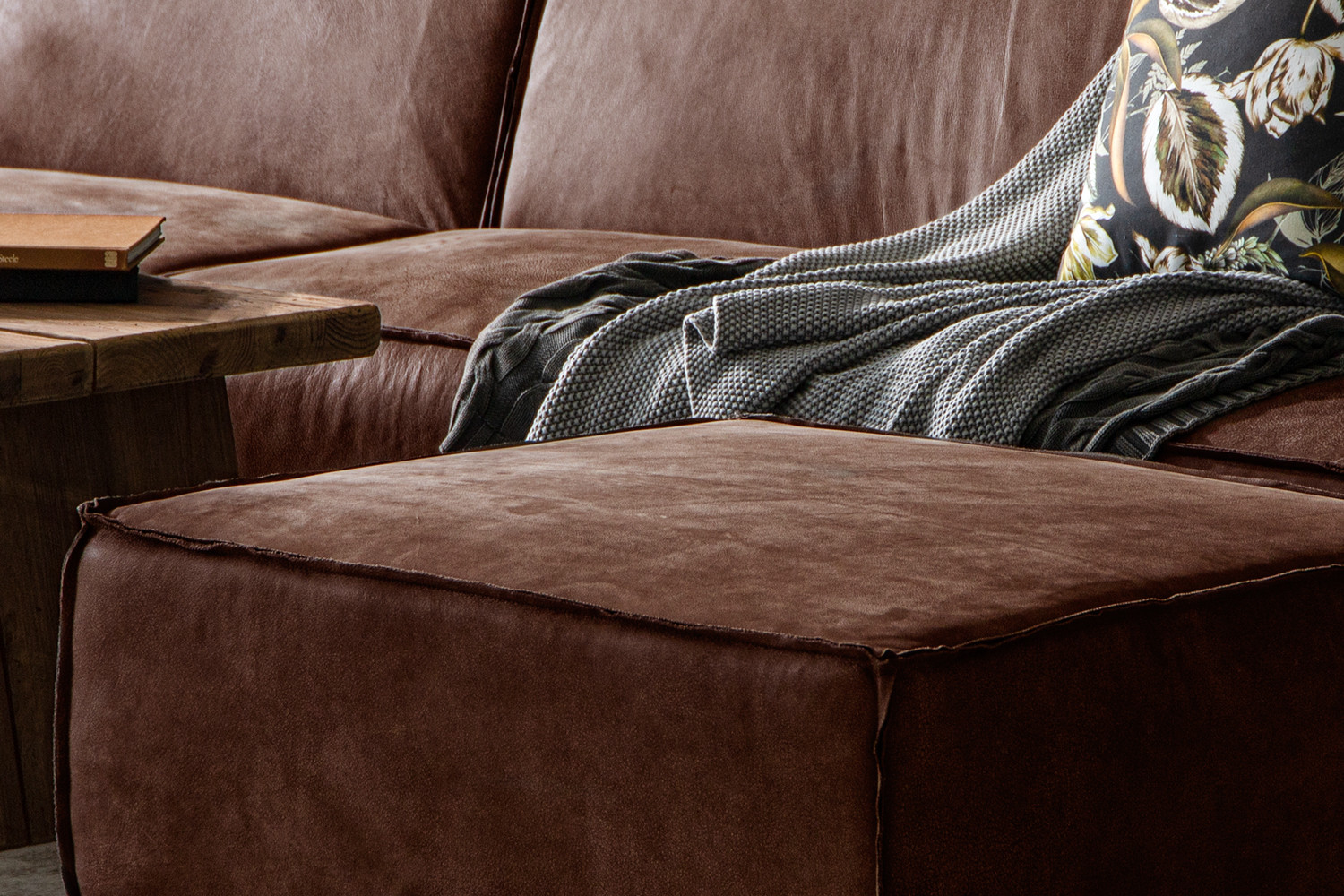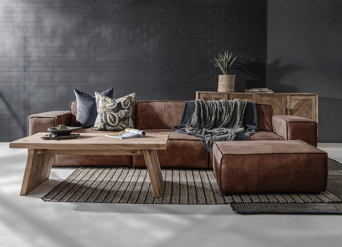 The Jagger Leather Modular Daybed boasts a bold contemporary design with a square-like silhouette, keeping the design simple but striking. With plenty of style and space this modular couch is upholstered with luxurious Nubuck leather, finished with reversed stitched seams to keep a natural raw look with a warm feel.