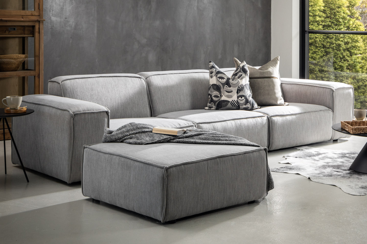 This Jagger Modular is a daybed with independent moveable modules for various spacious seating configurations. Simply slide each piece into place and clip the attachment mechanism underneath the couch. The Jagger presents a stylish homesteading staple with a sleek, contemporary look. This is achieved by pairing the iconic reversed seam stitching with plush high-quality polyester upholstery to maintain the stylish look while ensuring excellent durability and ease of maintenance, especially with children and pets in the picture.