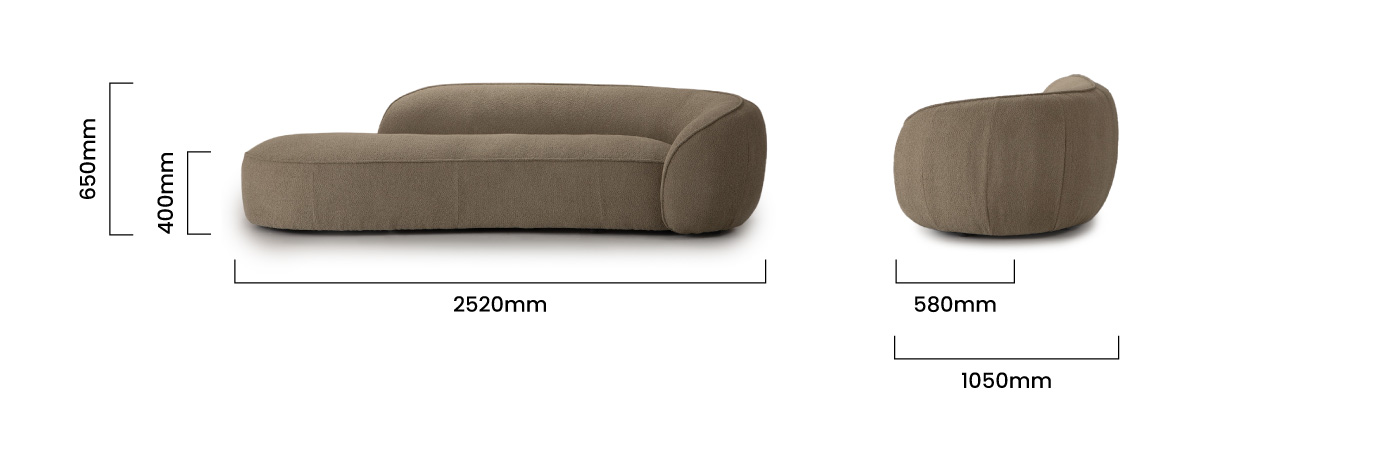 2520mm (L) x 1050mm (W) x 650mm (H) | Seat Height - 400mm | Seat Depth - 580mm