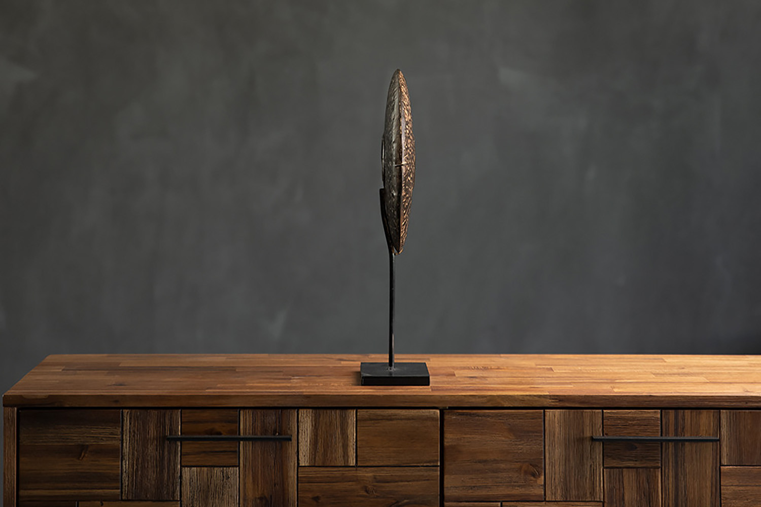 This piece is full of allure and natural elements that create an impactful statement. Made from iron, shaped, and finished with natural detailing, this sculpture is an eye-catching piece of art that is sure to introduce intrigue to your mantlepiece or display unit.