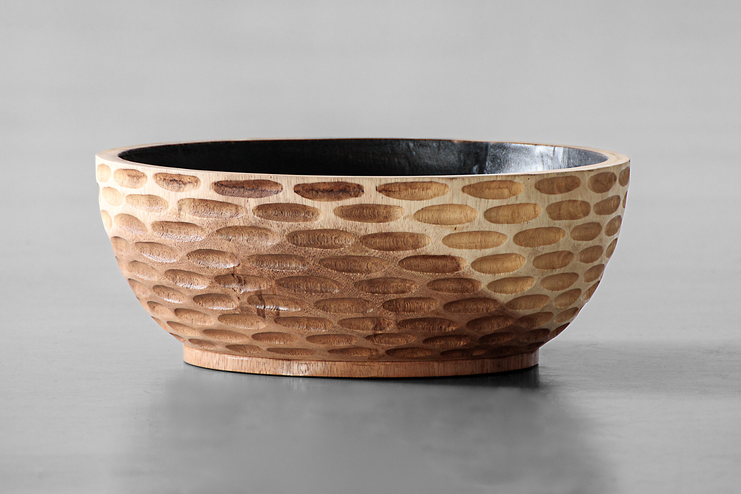 Introducing an elegant and decorative Nanga Bowl, the perfect vessel for adding a decorative touch to any space. The Nanga has a detailed and textured design, making it a stylish addition to any room. Made from solid Suar wood, this bowl brings modern class to your space.