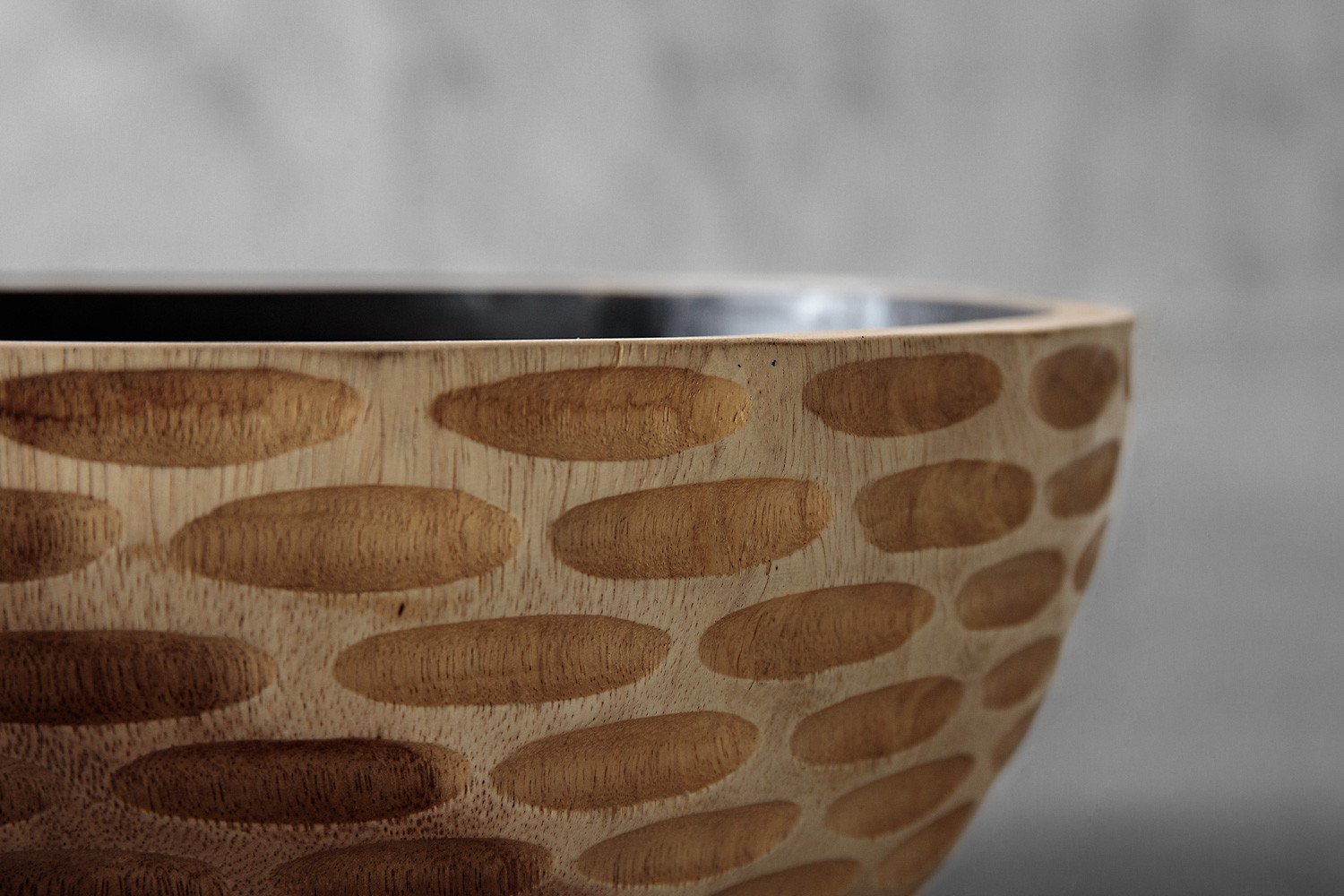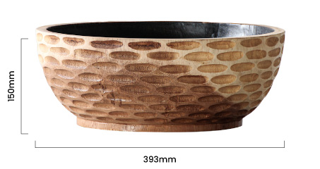 Give your home a modern touch with the Nanga Bowl. Made from Suar, this wooden bowl has a textured surface, creating a unique and striking décor addition. Decorating with bowls is an excellent way to style your home. Displayed independently as decorative objects, bowls make a lovely finishing touch for any room.