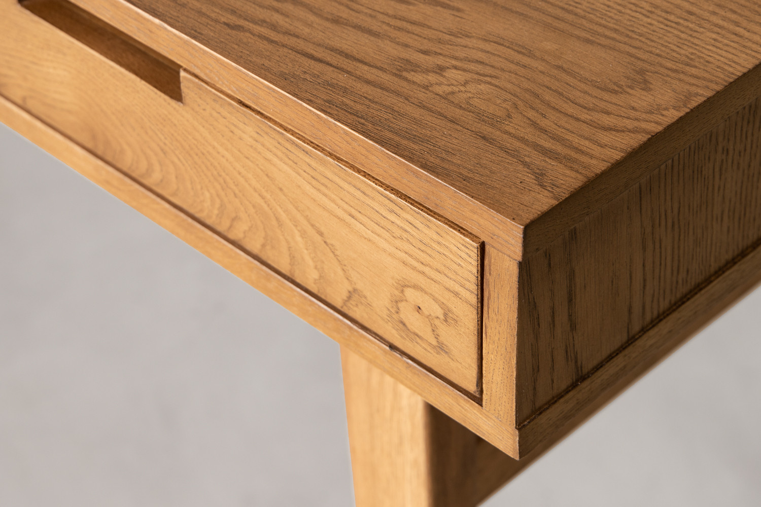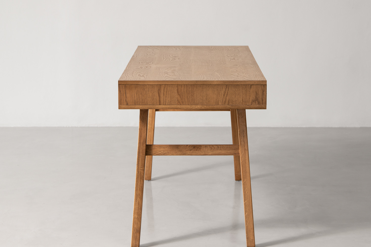 The Haylend Desk is expertly constructed from a tasteful combination of solid Oak wood and Oak veneers, presenting a bold feel with exceptional durability.