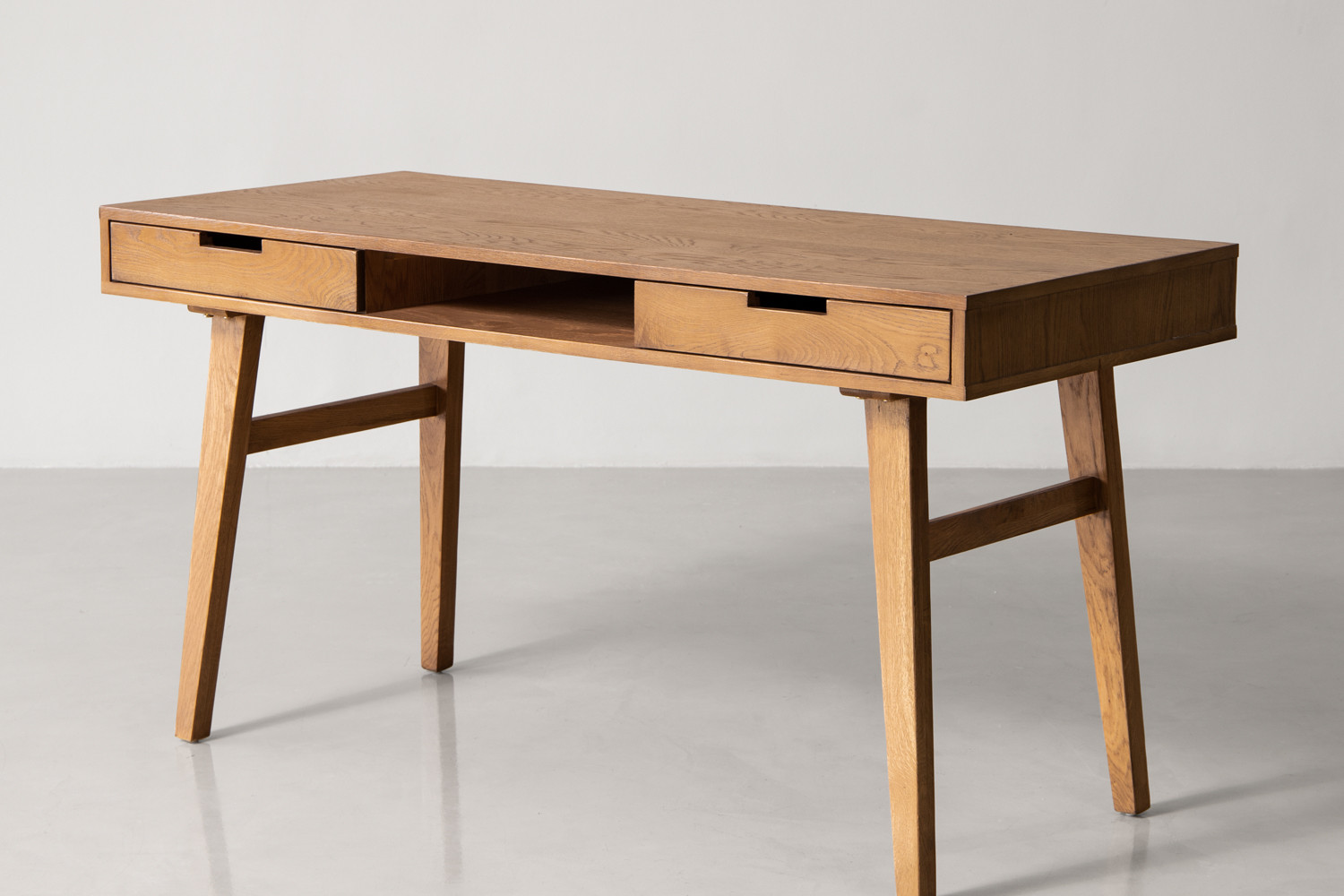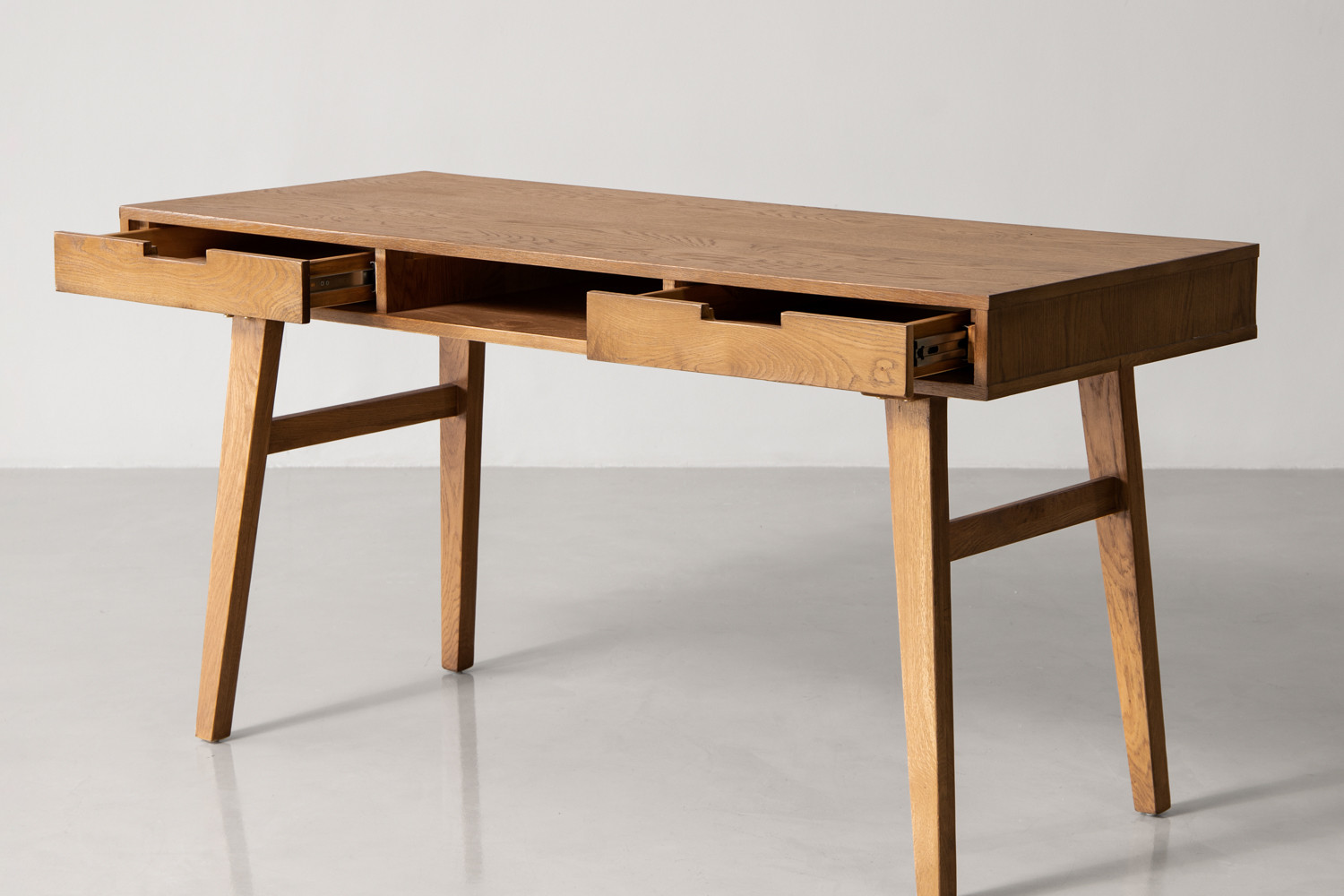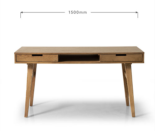 The Haylend Two-Drawer Desk introduces bold vintage class to your living, passage or office area. Made from warm Oak wood with Oak veneers, this 80’s inspired drawer desk features a sleek classic design with a spacious compartment seperating two convenient drawers for convenient storage.