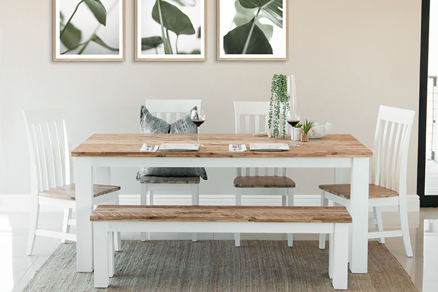 Bring a casual and refreshing look to your dining, living or entertainment space with the beach house inspired Waldorf dining bench.
