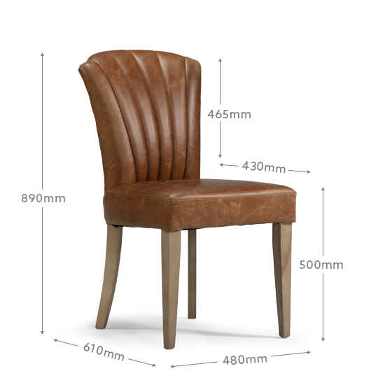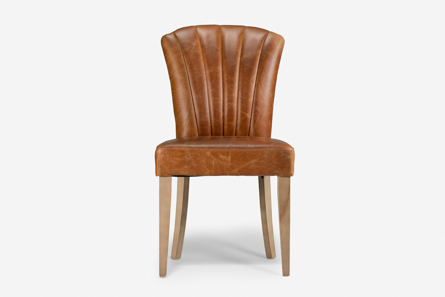 With its mermaid-inspired design, the Arielle Dining Chair is both distinctive and superbly comfortable, upholstered in luxurious rich tan full-grain leather, and complemented with tapered beech wood legs. Channel-stitched detailing on the chair back completes and adds a touch of personality to this unique and alluring look.