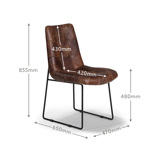 The Cruz Leather Dining Chair offers a modern personality that’s full of character. This comfortably padded seat is upholstered in luxurious full grain leather in a rich vintage tan, contrasting with the sleek modern lines of the black metal frame and legs. Channel-stitched patchwork detail completes the distinctive look of this piece.