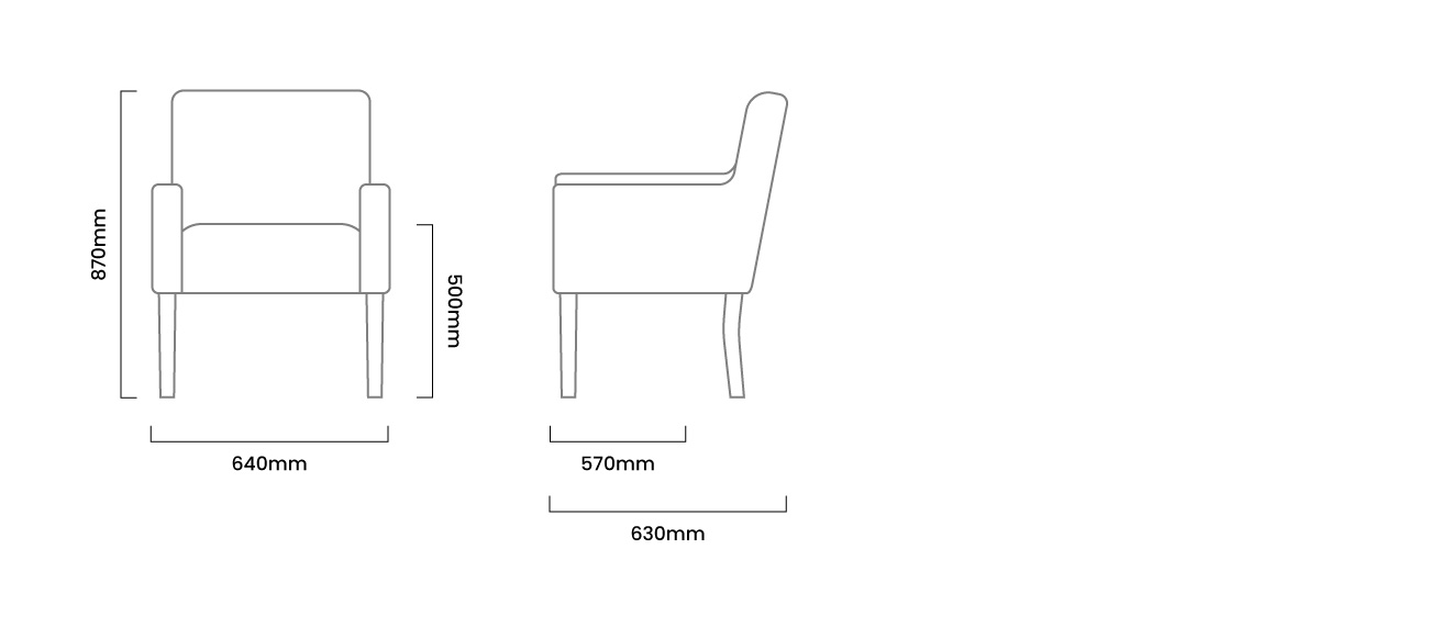 640mm (L) x 630mm (W) x 870mm (H) | Seat Height - 500mm | Seat Depth - 570mm