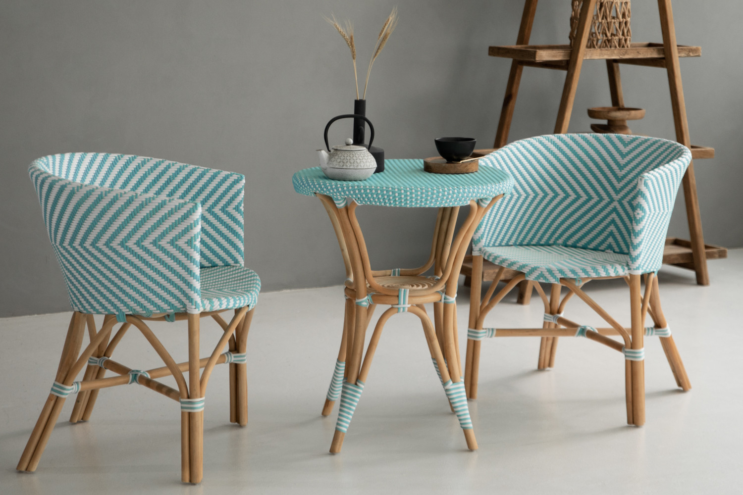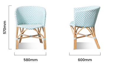 The Ineze Dining Chair adds a bold contemporary twist to the classic French bistro chair design. Featuring a two-toned woven PE rattan seat in a tubbed seat design, this stylish dining chair is full of unique and vibrant charm. The Inez combines cane and PE rattan to bring an eclectic touch of natural materials to your dining, patio, or occasional space.