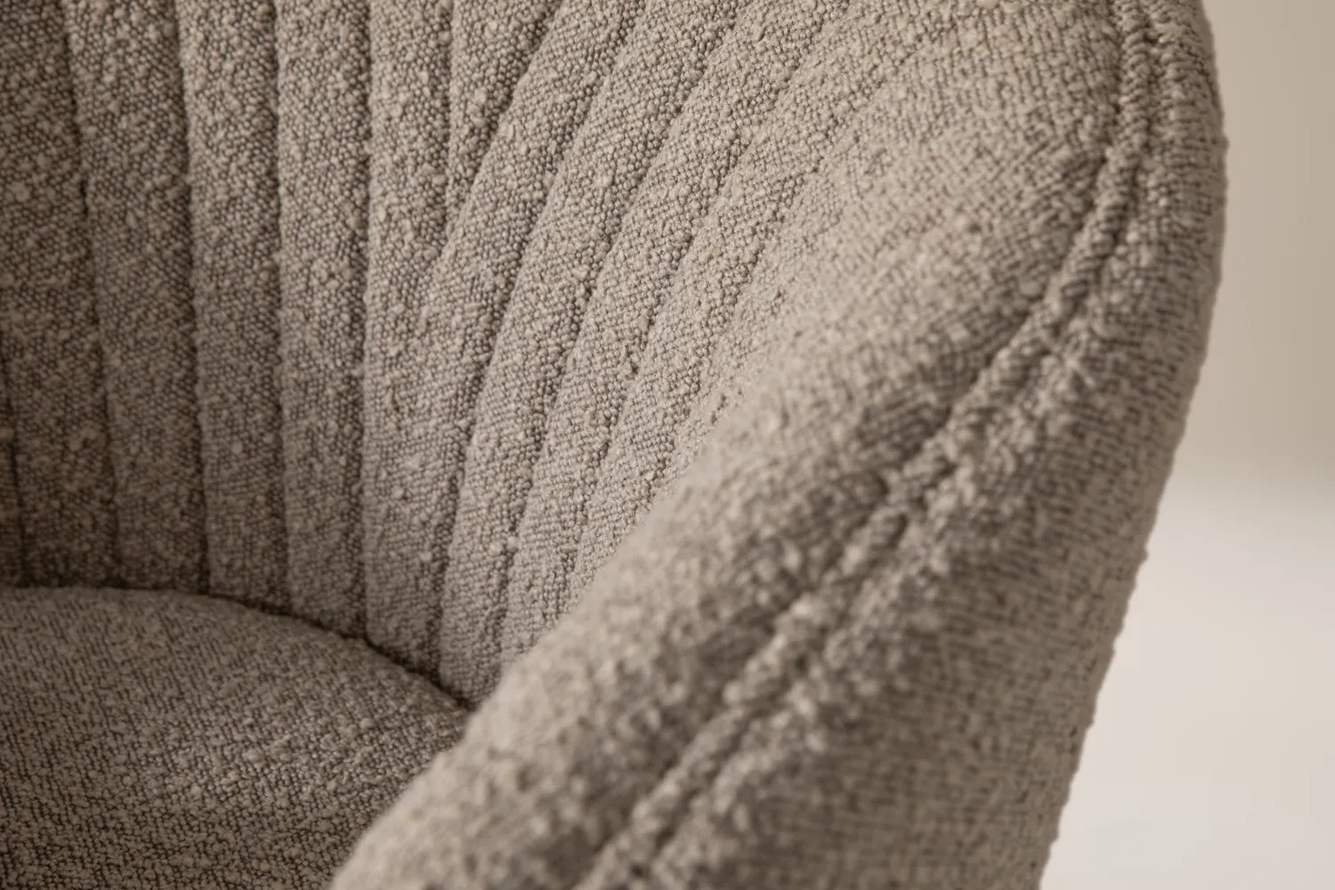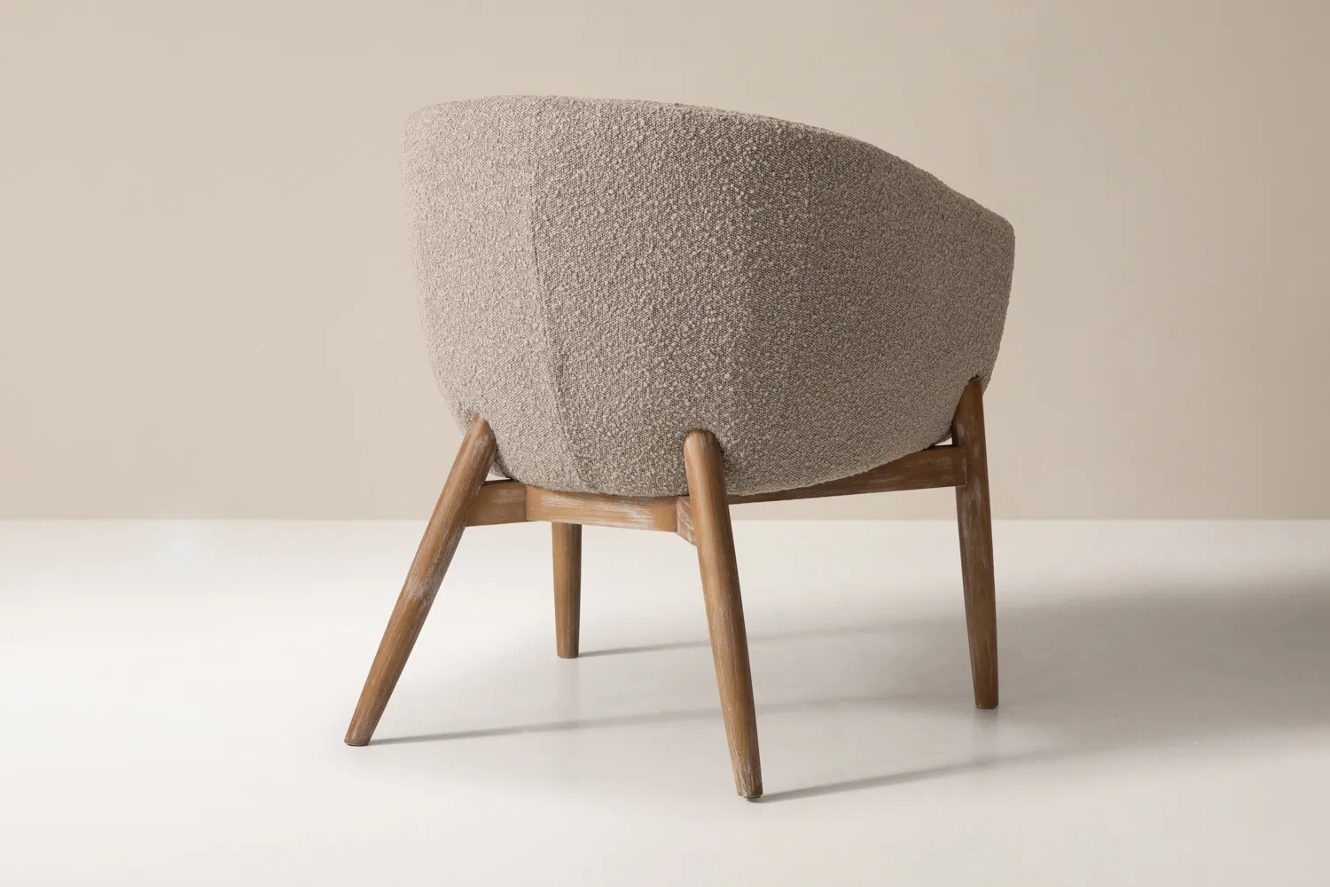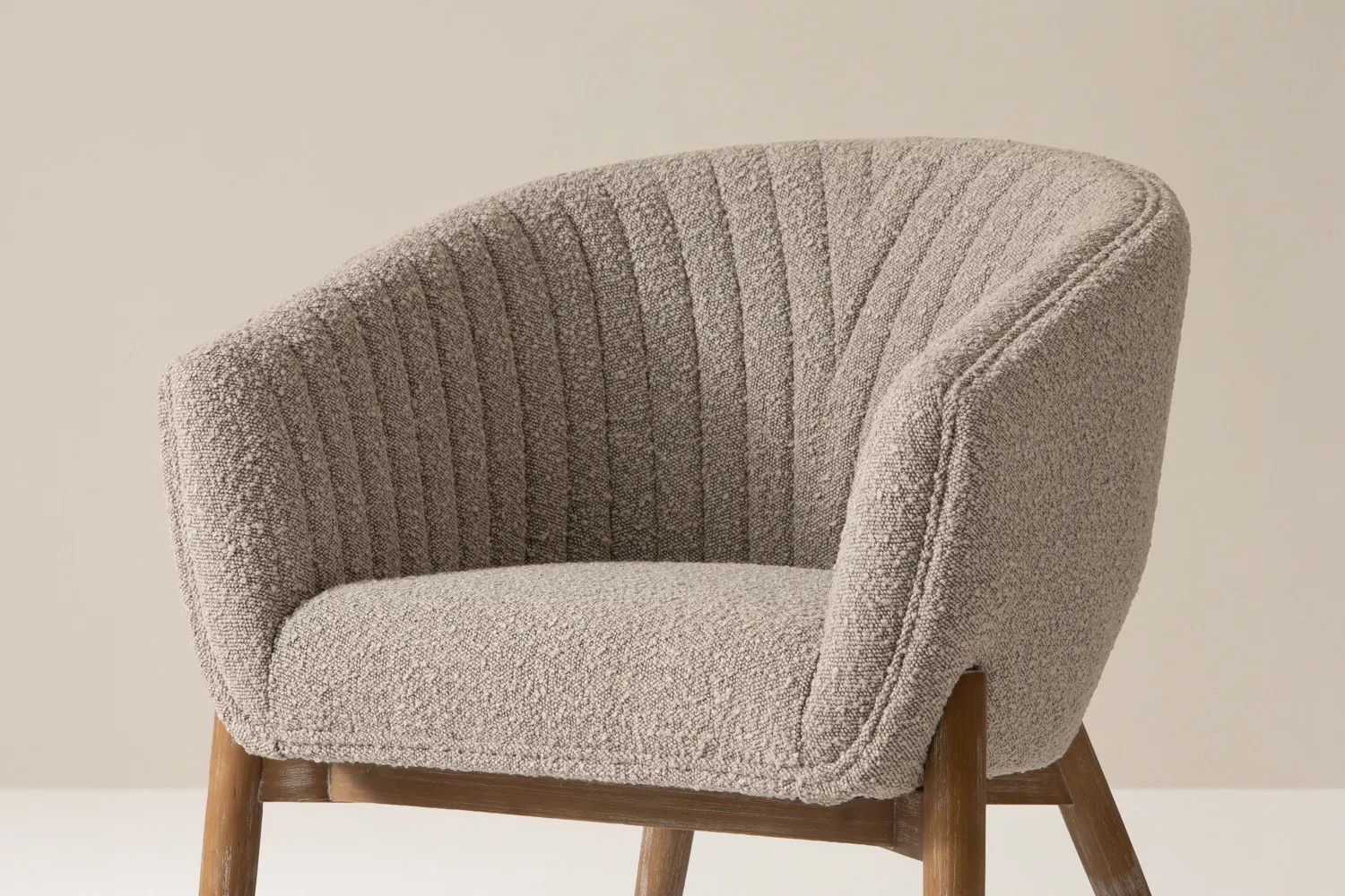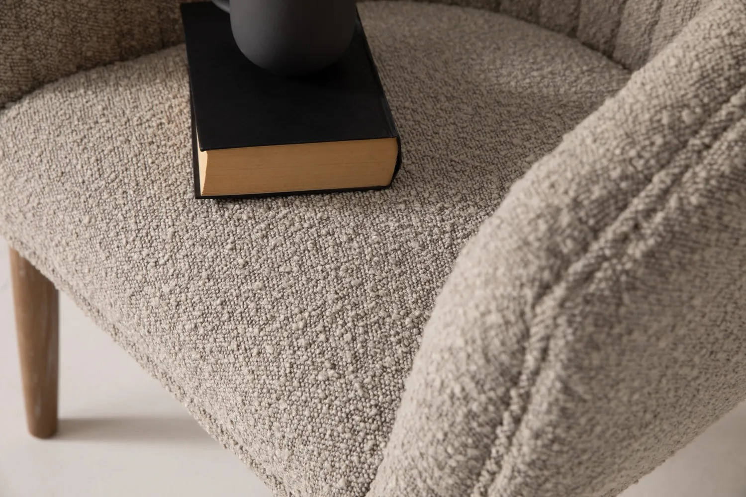 With the chair’s customised tub design upholstered in high-quality boucle fabric, you’ll be sitting pretty in the lap of comfort as you enjoy meals and social time with friends and family. The soft-touch finish is perfectly complemented by the smooth ash wood frame, which ensures a durable and supportive design.
