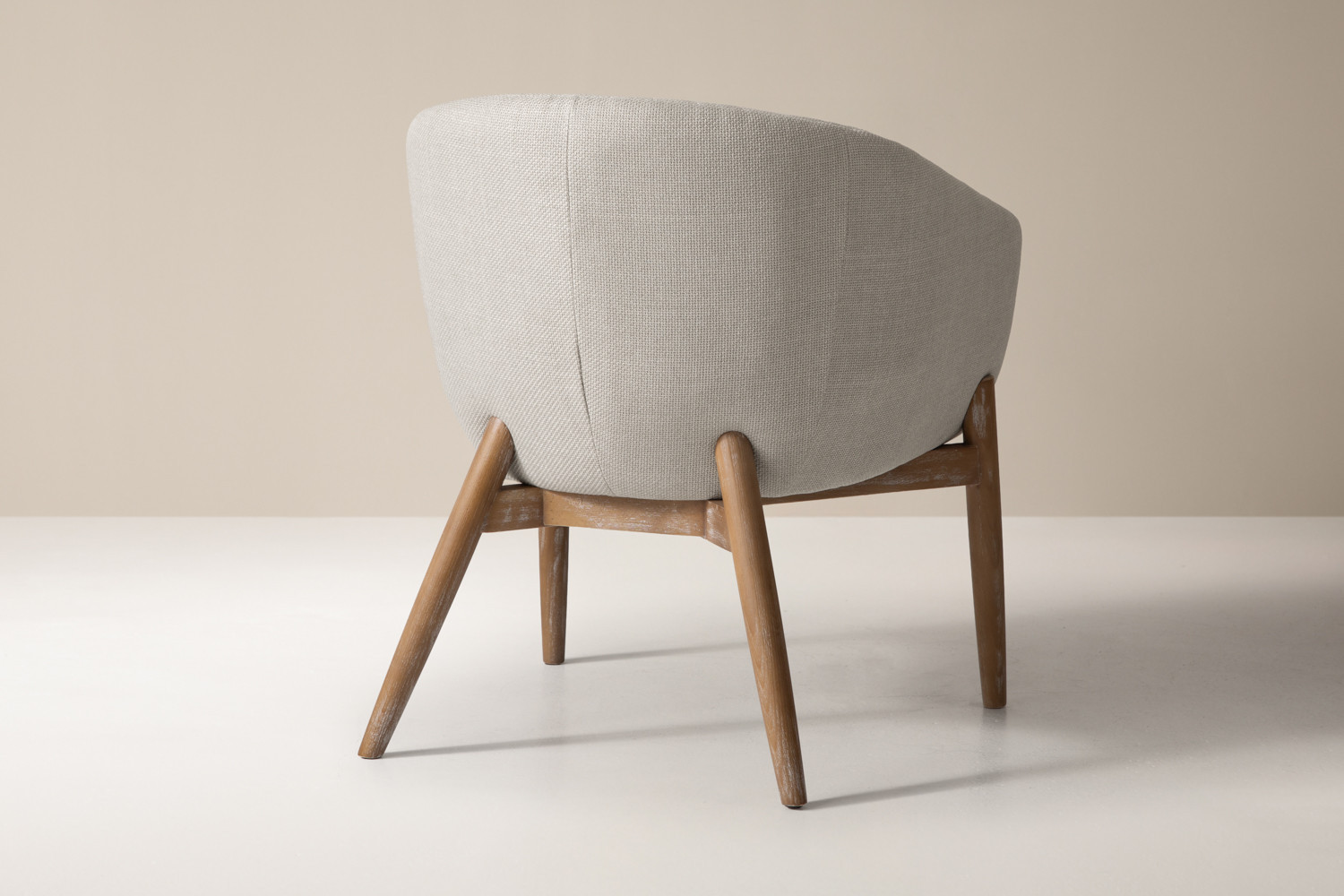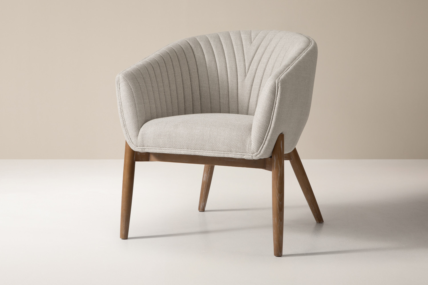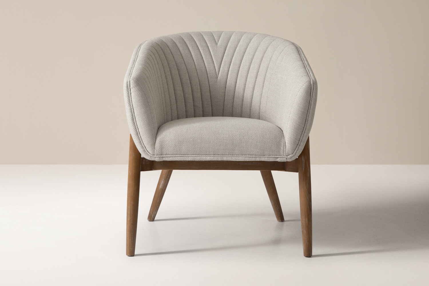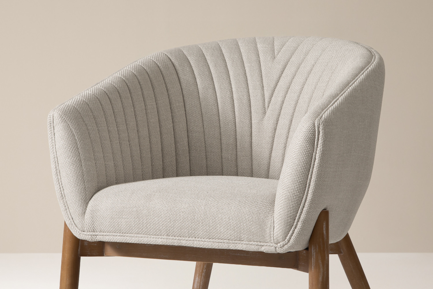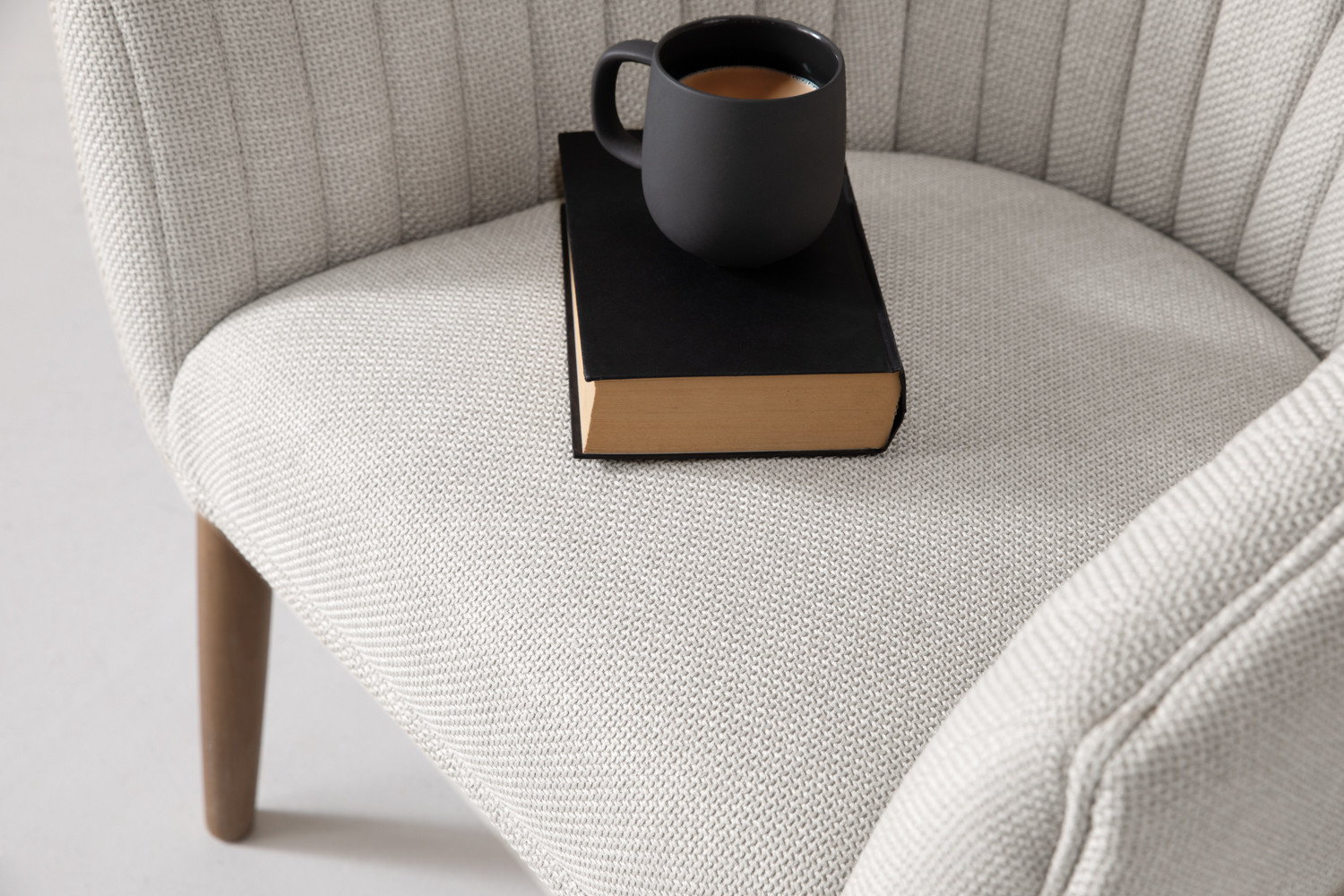 With the chair’s customised tub design upholstered in high-quality fabric, you’ll be sitting pretty in the lap of comfort as you enjoy meals and social time with friends and family. The soft-touch finish is perfectly complemented by the smooth ash wood frame, which ensures a durable and supportive design.