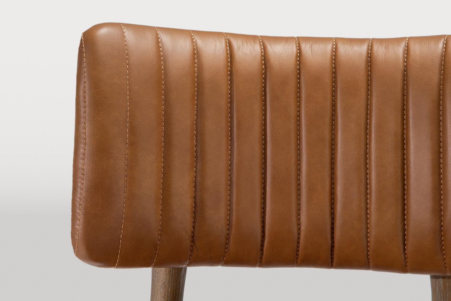 Bring contemporary comfort to your table with the Leodis Leather Dining Chair. Its gently contoured backrest, generous seat padding, and tapered legs strike the perfect balance between style and everyday functionality. The chair’s full-grain leather upholstery is richly textured and on-trend with its tan tones, and its lumbar support encourages lingering mealtime conversations. A perfect fit for everything from lazy Sunday brunches to elegant dinner parties.