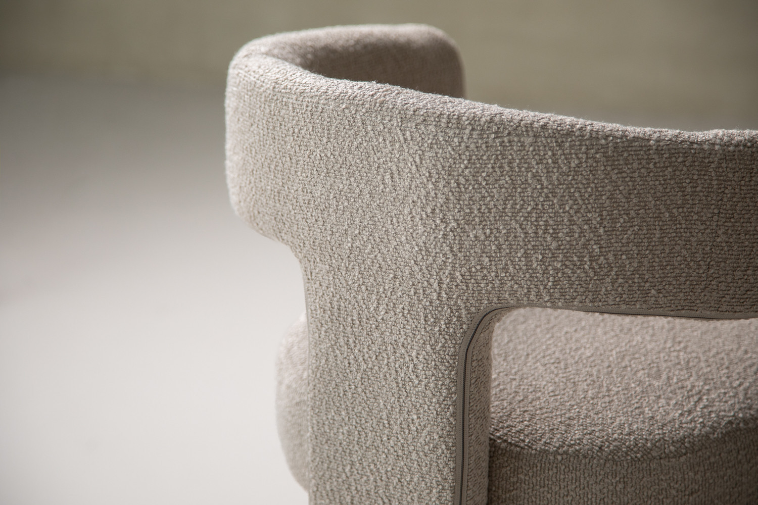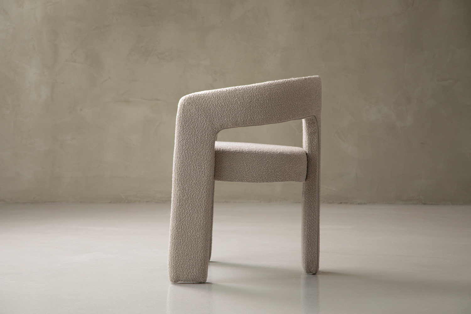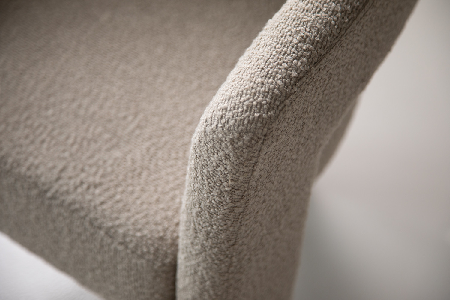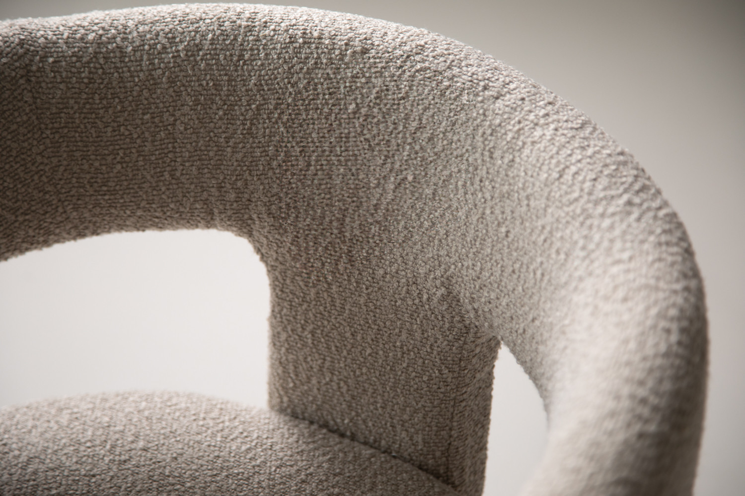 The Marlow Dining Chair pairs a sculptural barrel-back silhouette with plush bouclé upholstery in a cream hue. It blends contemporary curves with everyday durability, featuring padded comfort with a supportive wraparound back and open-arm detail. The tactile bouclé finish provides cosy texture, along with a strong sense of personality.