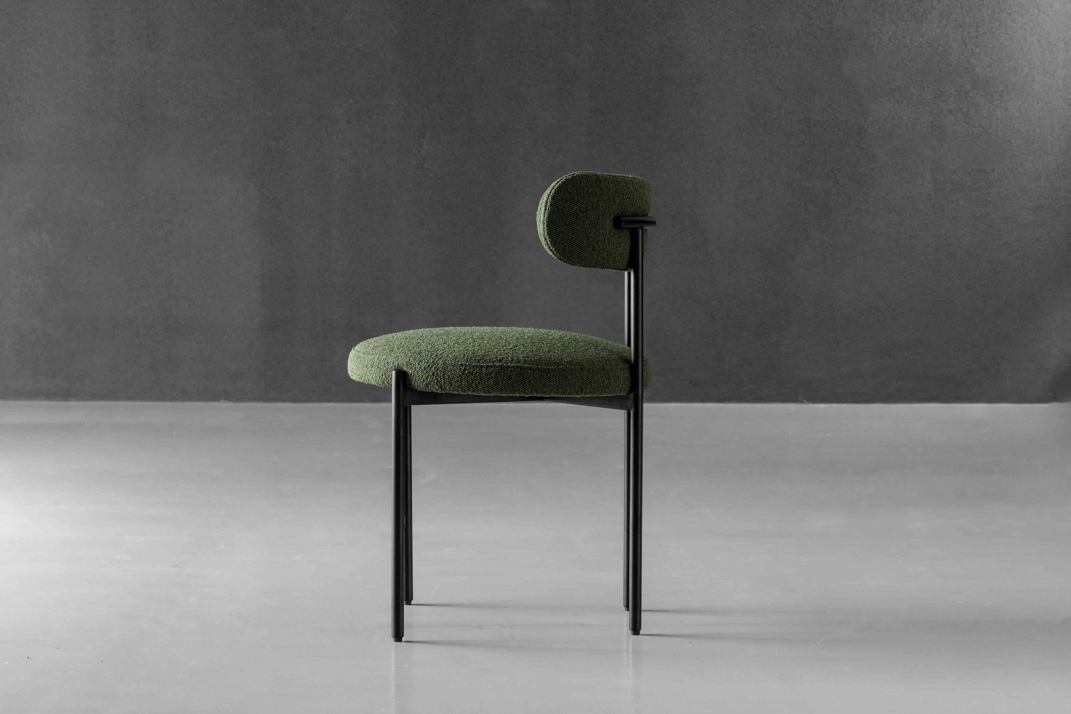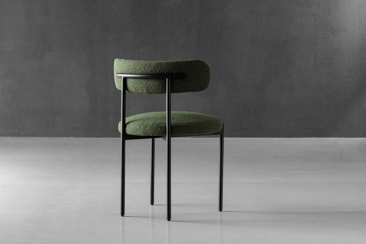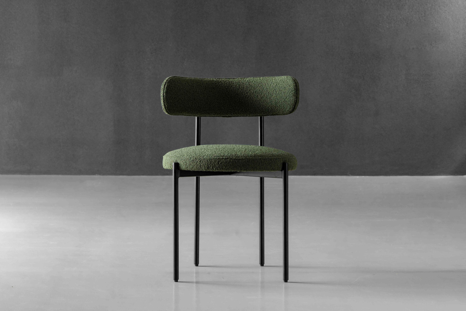 Inspired by the clean lines and functionality of Scandinavian design, the Nara Dining Chair embodies the principles of simplicity and practicality. Its sleek, minimalist profile makes it an excellent addition to both modern and traditional dining rooms, effortlessly elevating the overall aesthetic of the space. The combination of boucle fabric and mild steel creates a harmonious blend of materials that balances texture, warmth, and durability.