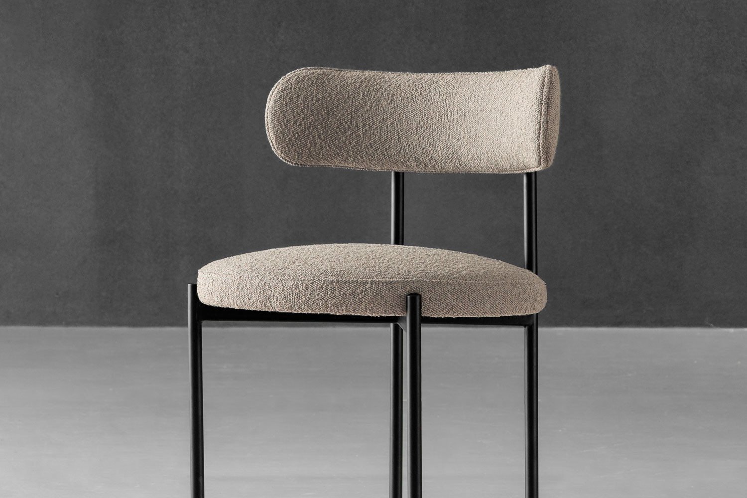 Transform your dining space with the Nara Dining Chair, a stunning piece that effortlessly combines Scandinavian-inspired design with the timeless elegance of mid-century modern aesthetics. It's upholstered in plush boucle fabric, known for its soft, looped texture that adds a touch of luxury and comfort.