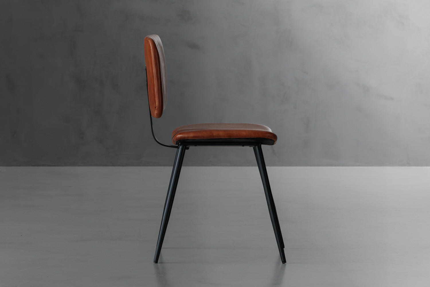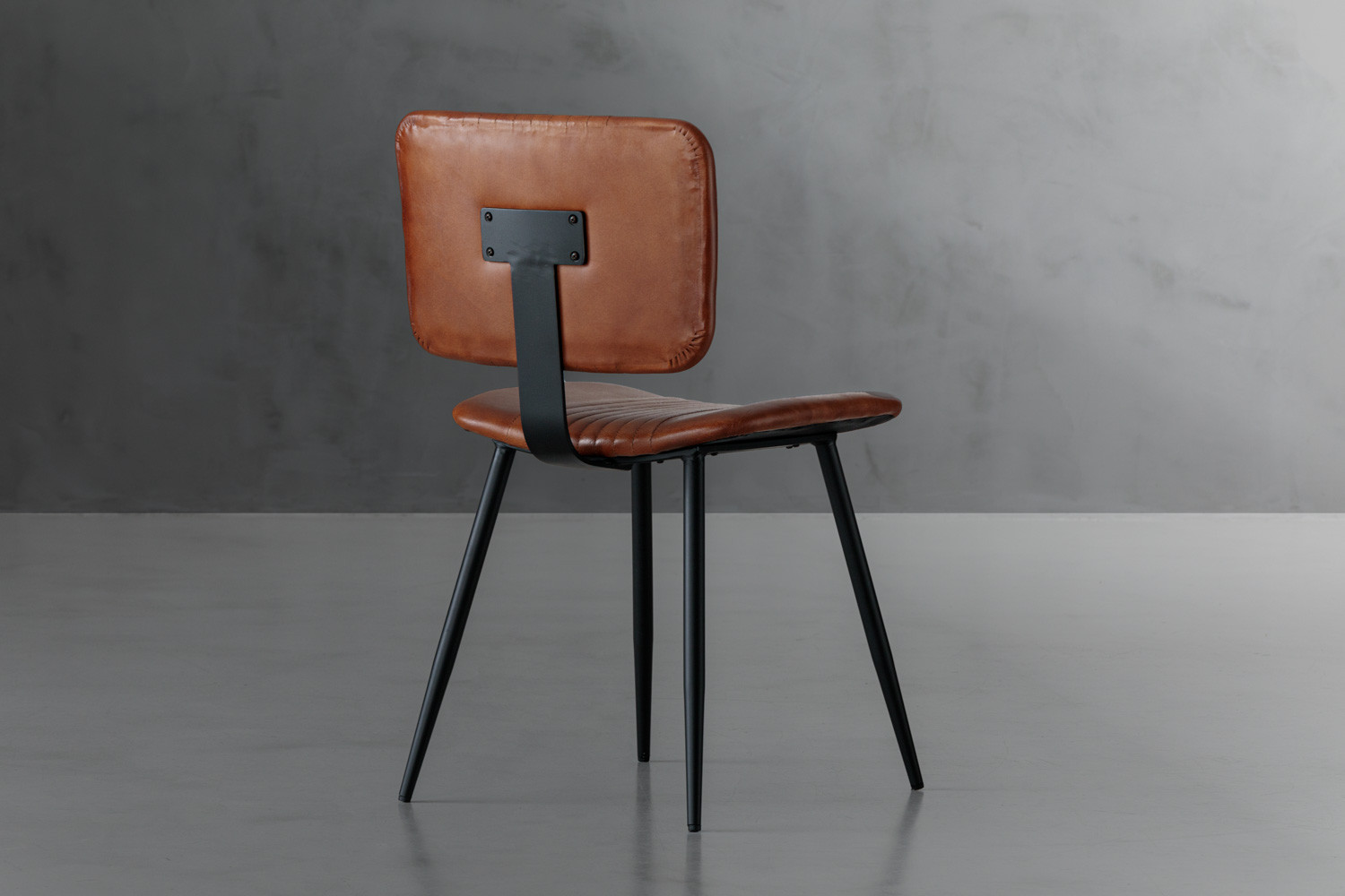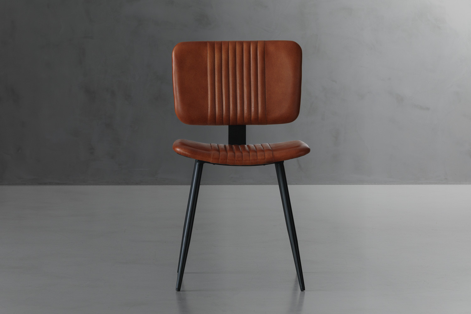 The Neeson Leather Dining Chair, with its bourbon-hued full grain leather, brings a touch of class to any dining setting. Its elegant contours and fine stitching highlight its all round luxury, while its supportive backrest and robust frame offer a seamless blend of style and comfort.