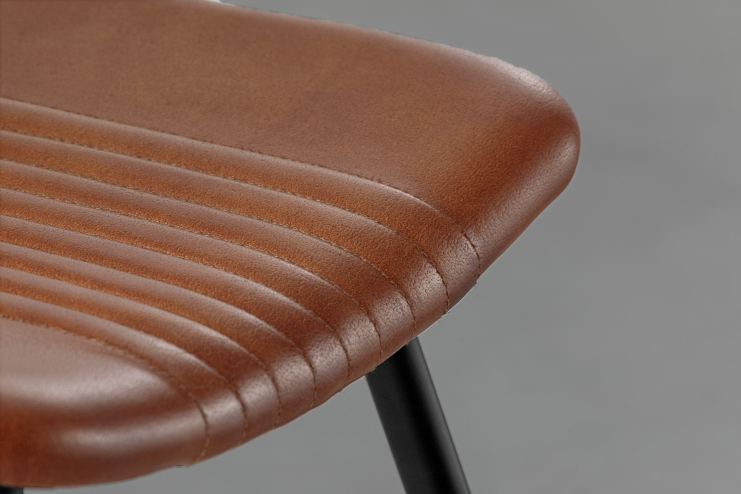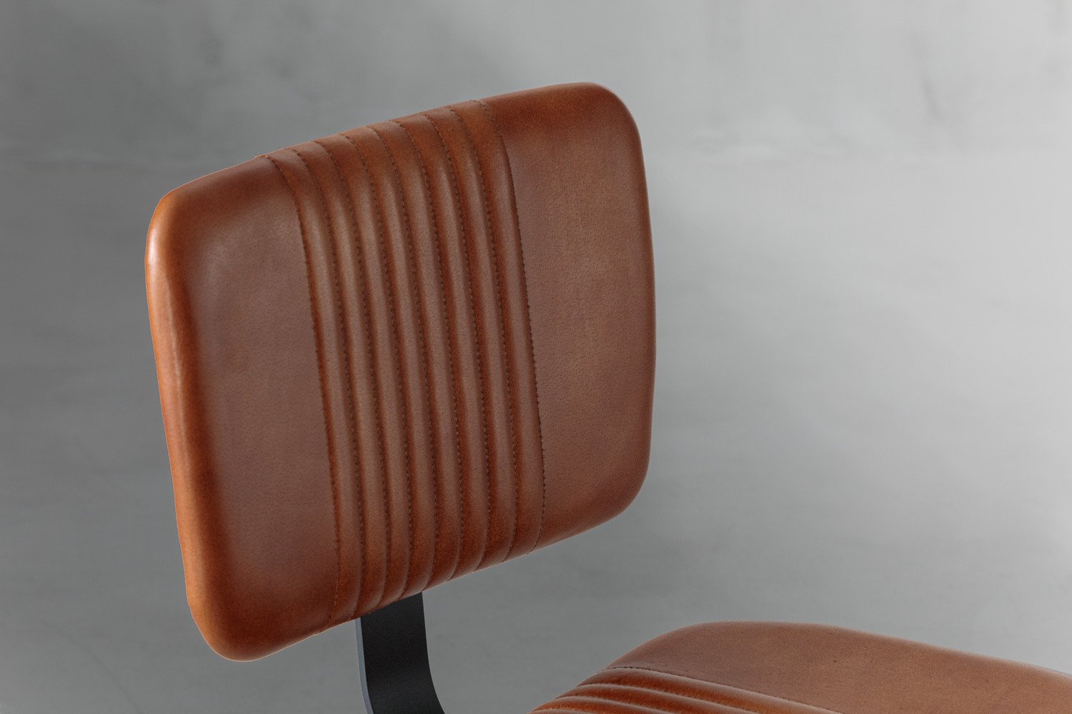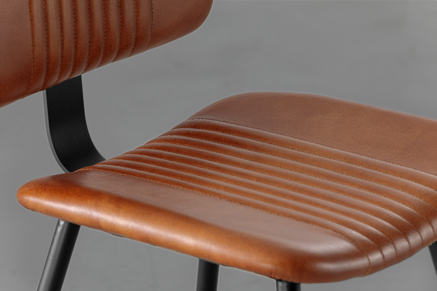 The Neeson Leather Dining Chair, with its bourbon-hued full grain leather, brings a touch of class to any dining setting. Its elegant contours and fine stitching highlight its all round luxury, while its supportive backrest and robust frame offer a seamless blend of style and comfort.