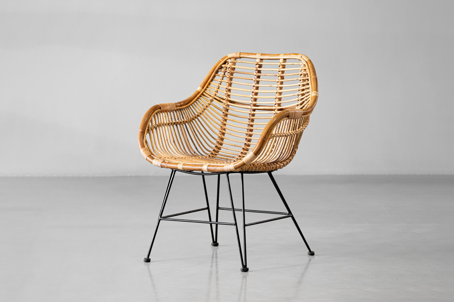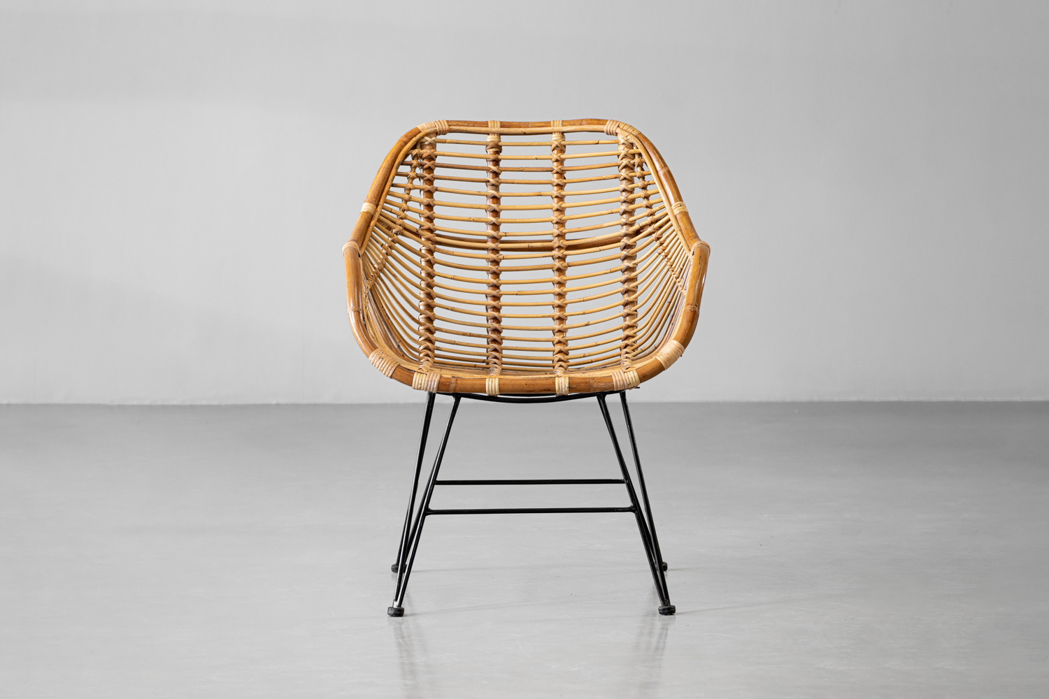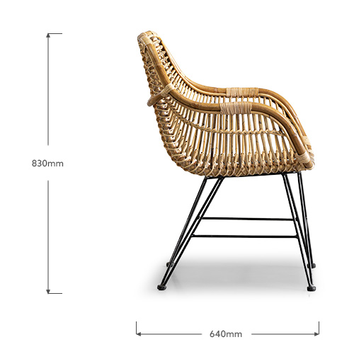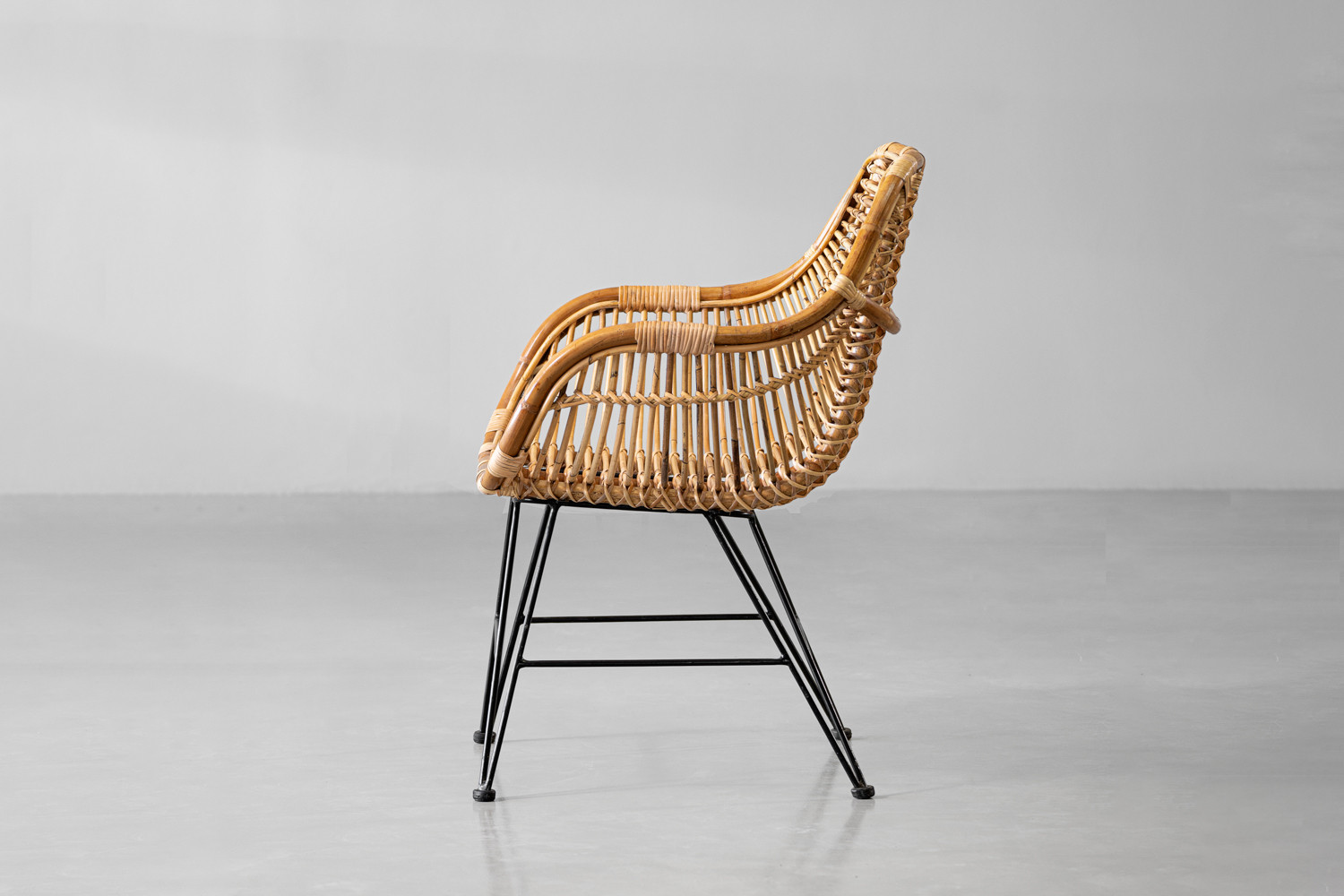 Chair: Natural Rattan and Cane | Legs: Powder Coated Steel