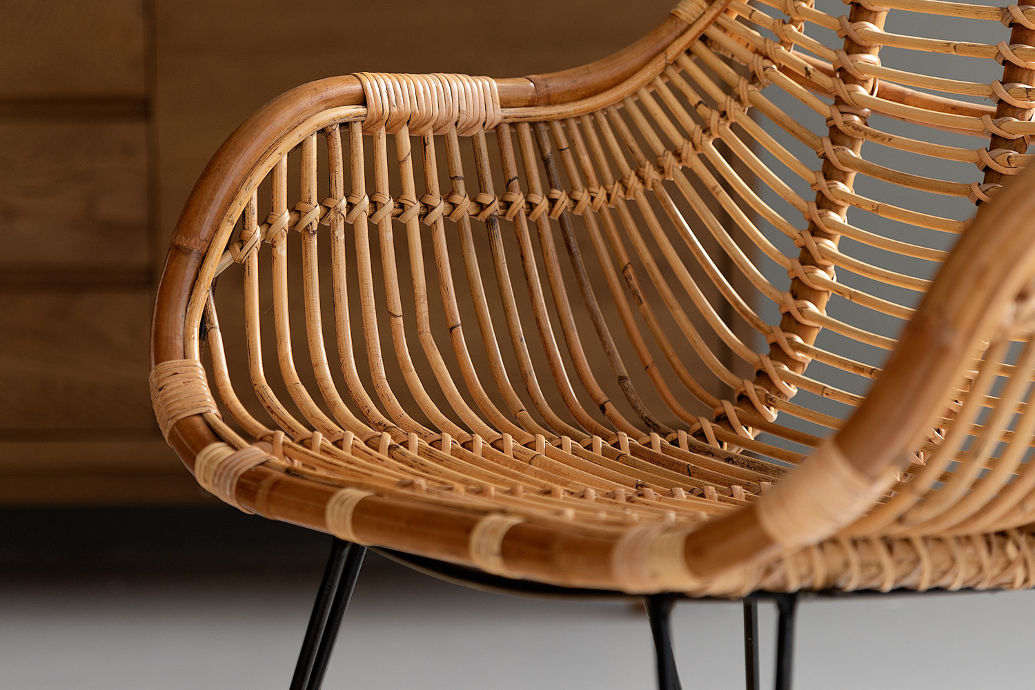 Material: Chair: Natural Rattan and Cane | Legs: Powder Coated Steel