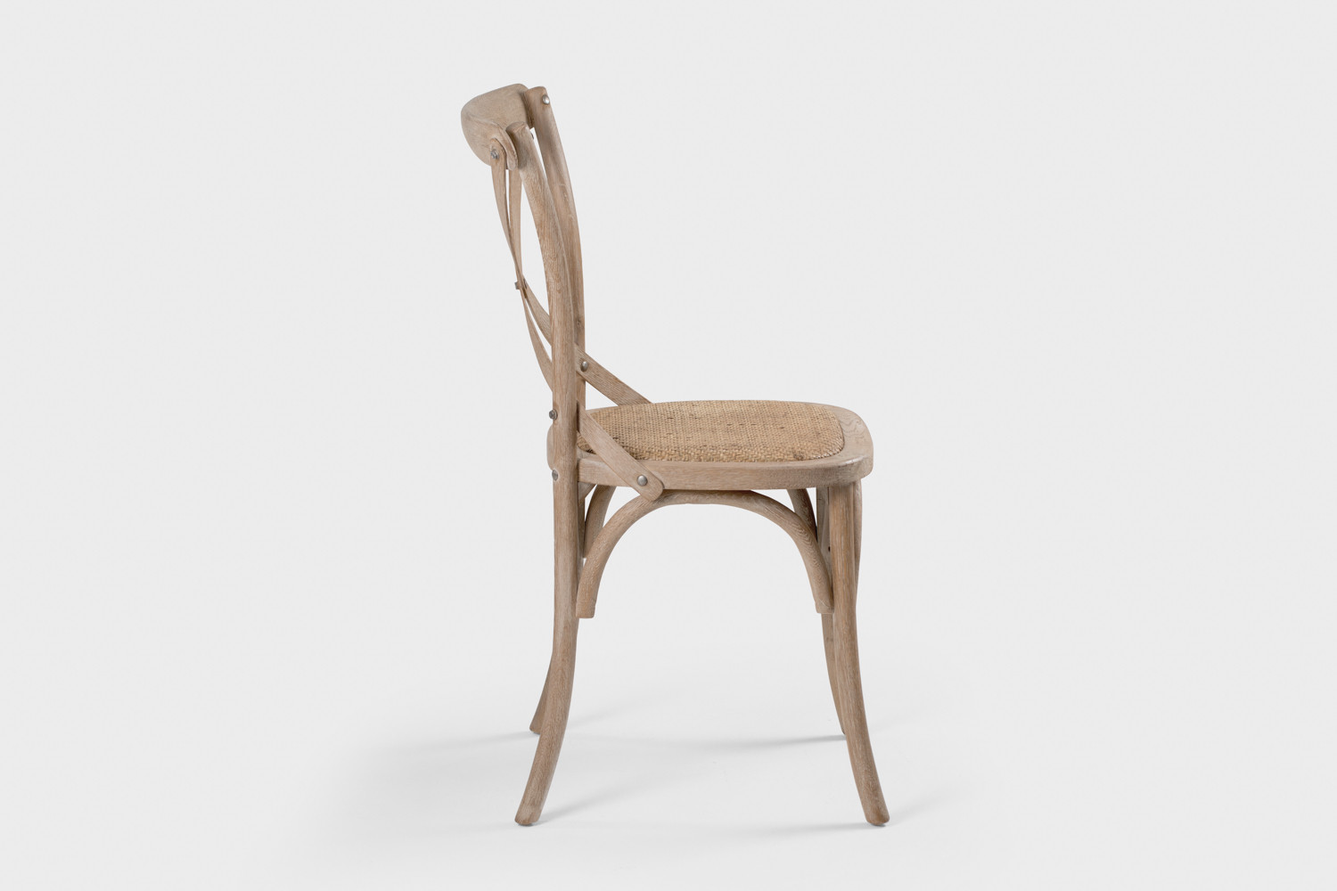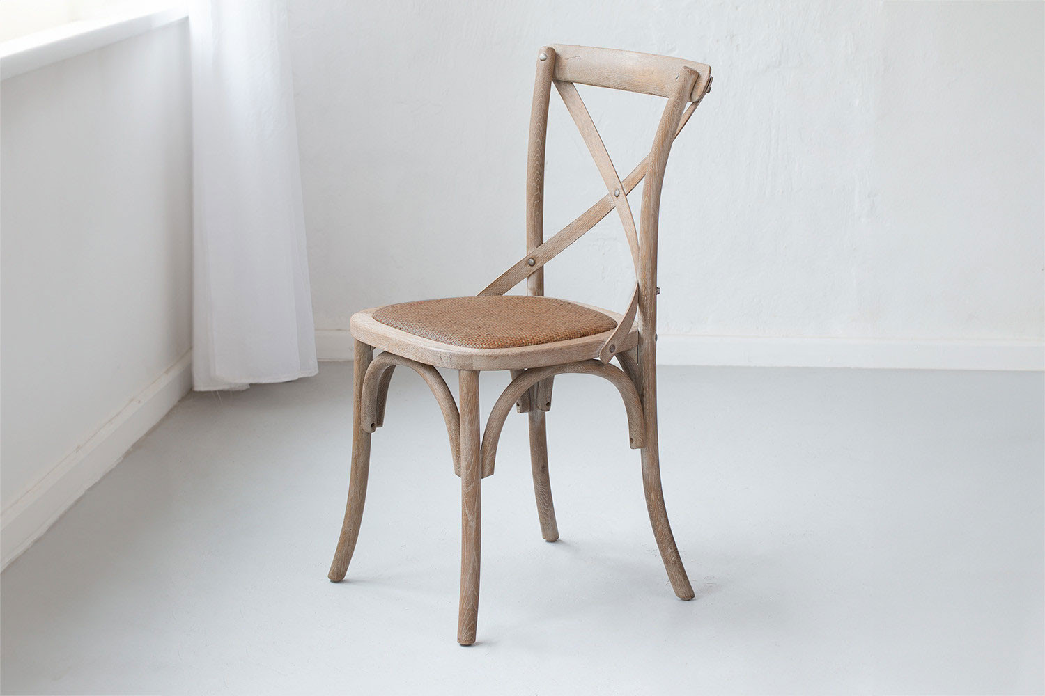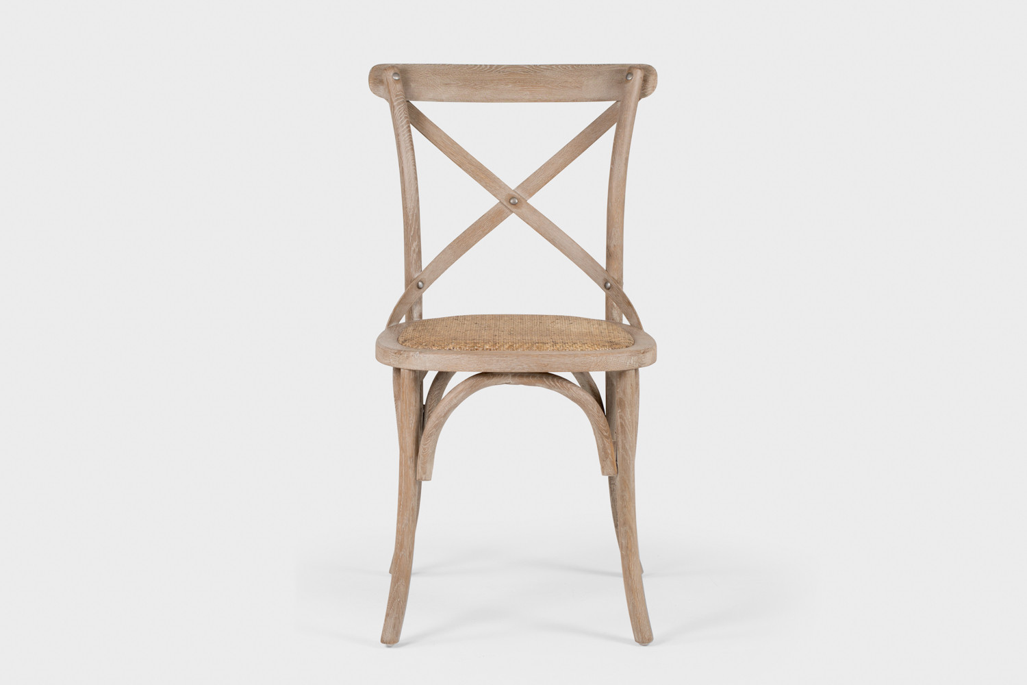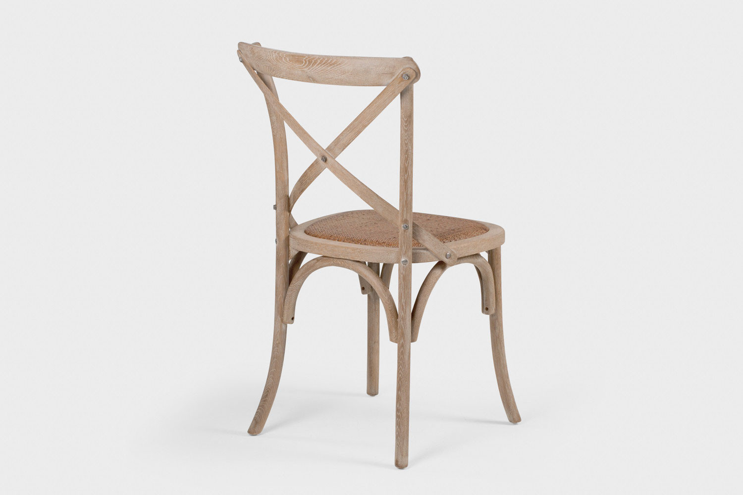 Bring the inspiration of French country living to your dining room with the Provance Oak Dining Chair. Featuring a solid oak frame with the wire-brushed finish, a distinctive cross-back design, and padded rattan seat, all the elements come together perfectly to give this piece its charming countryside character.
