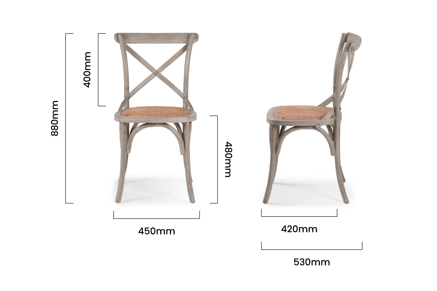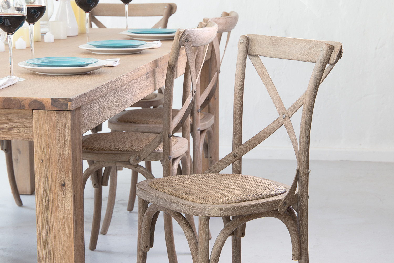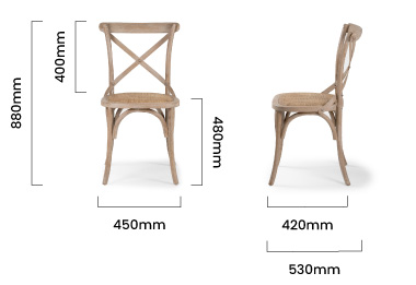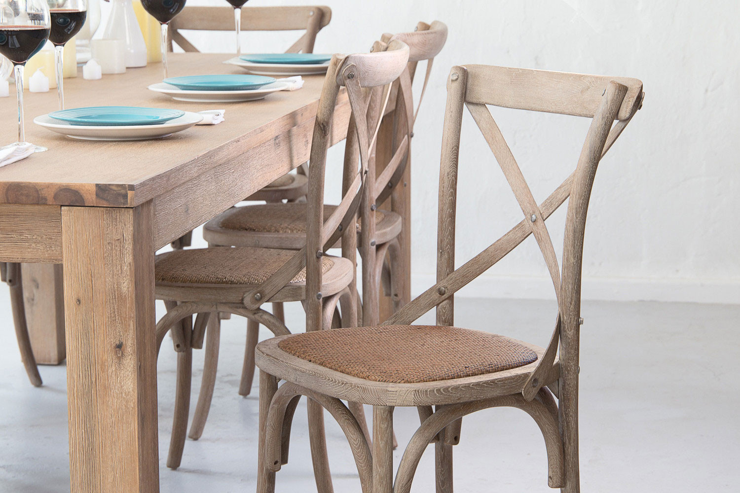 Bring the inspiration of French country living to your dining room with the Provance Oak Dining Chair. Featuring a solid oak frame with the wire-brushed finish, a distinctive cross-back design, and padded rattan seat, all the elements come together perfectly to give this piece its charming countryside character.