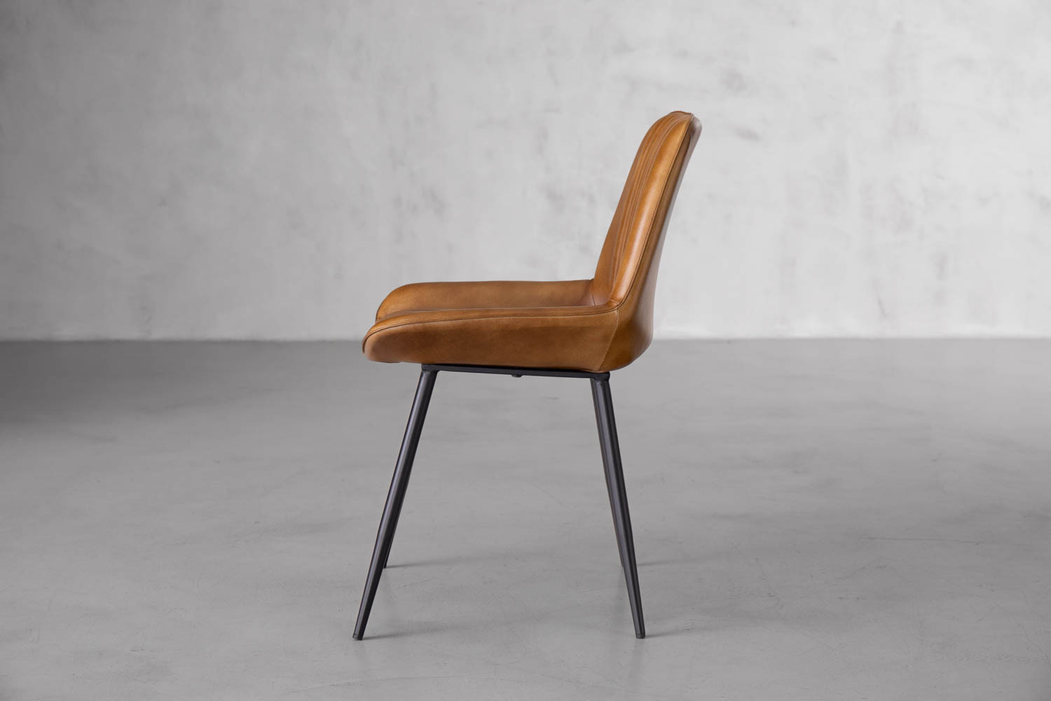 The Reeves Dining Chair brings unmistakable elegance to your interior, offering both supreme comfort and a distinguished style. The vintage tan colouring complements almost any decor, and its sleek black legs crafted from iron give it a solid and comfortable base. Take a seat on a throne for modern dining.