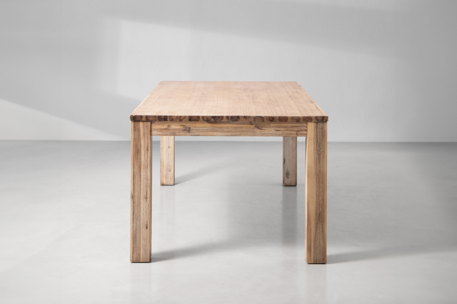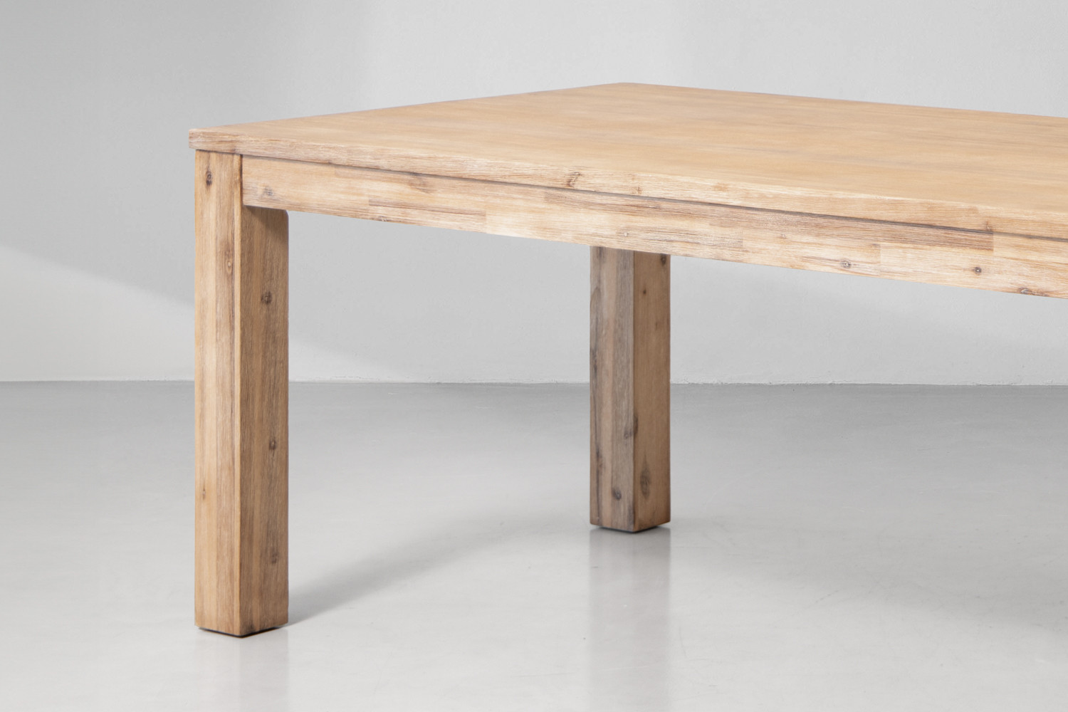 Built from Acacia wood, with acacia wood veneers a high-density hardwood known for its durability, the Vancouver dining table promises to remain the centre of your dining space for decades to come. The wire brush technique works beautifully to bring out the unique grain of this wood, while giving it a slightly weathered look that will hide any accidental scratches.