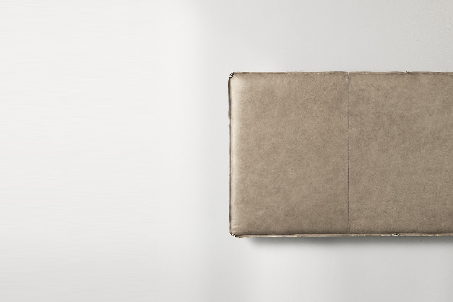 The Matlock Leather Headboard welcomes a functional bedroom piece, teeming with contemporary flair. This wall-mounted full grain leather headboard features reversed seam stitching to maintain the warmth from the natural raw look produced by its premium leather exterior.