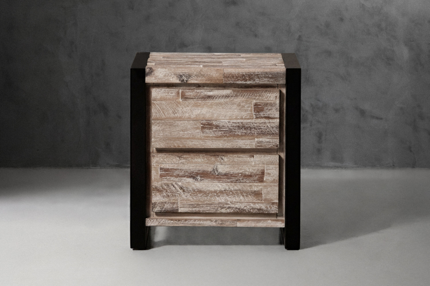 The Ashford Bedroom Combo creates an instantly cohesive sleep space. It pairs the Ashford Double Bed Base with the Ashford Pedestal and a matching Chest of Drawers. This set is crafted in solid acacia with acacia veneers and powder-coated steel detailing. The wire-brushed finish adds texture to the ensemble, while the generous drawer storage adds a practical touch.