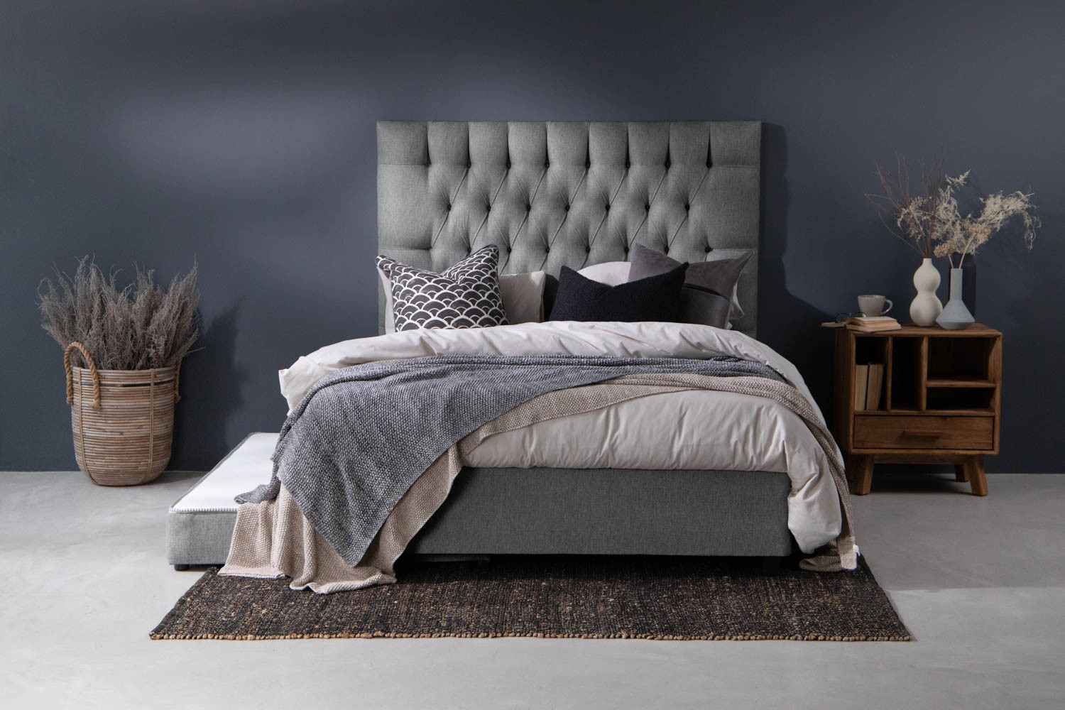 The Skyler stands out for its useful pull-out bed or 'trundle' that fits snuggly within its luxe frame. This extra or second pull-out bed contains a high-density foam mattress, upholstered in matching high-quality fabric.