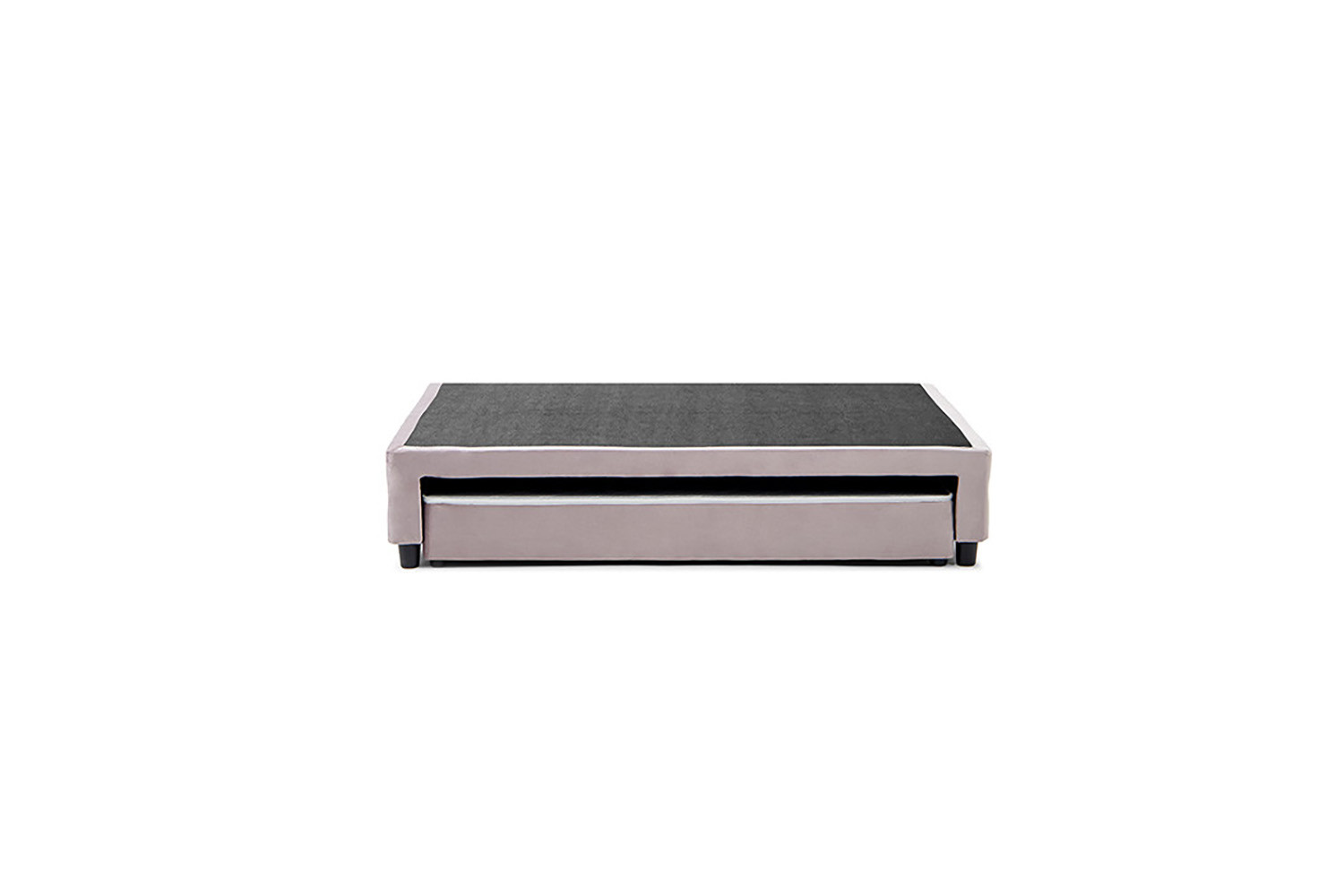 - A modern, upholstered bed base with an additional sleek pull-out bed base