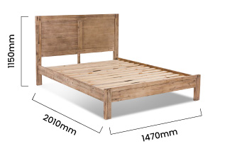 The Vancouver Acacia Wood Bed is available in Single, Double, Queen, and King with Extra Length XL, and features wooden slats that provide excellent ventilation and support for all mattress types, including innerspring, memory foam and latex.