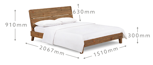 Constructed from reclaimed pine, the Voyager Bed offers rustic character and raw good looks. With a slatted platform base and a beautiful headboard attached, this bed offers excellent support for all types of foam mattresses, and will easily provide the anchor point your bedroom needs.
