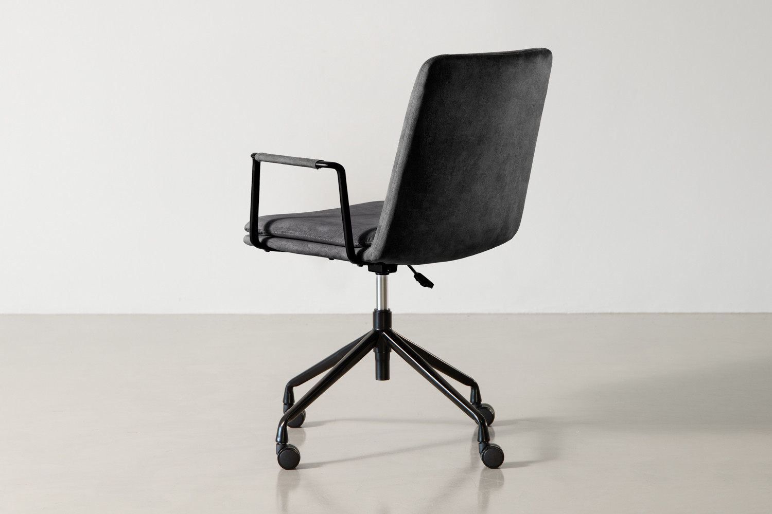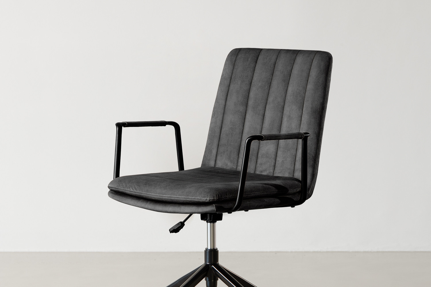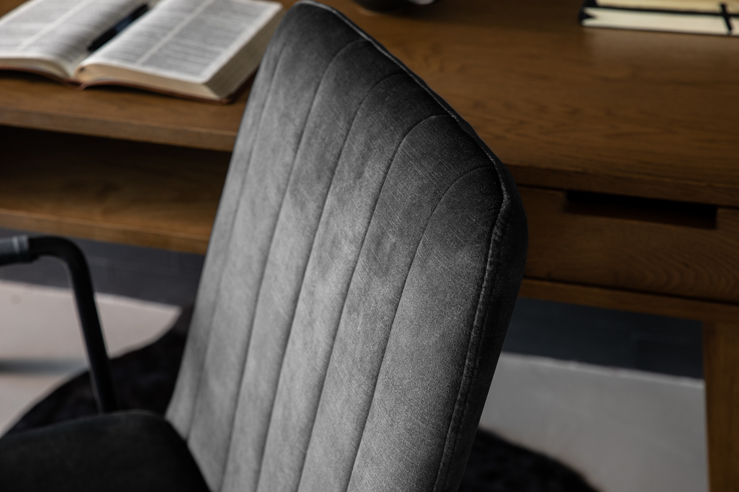 The Dursley Office Chair offers a comfortable and elegant solution to office seating. The workspace chair’s plush seating is covered in high-quality velvet and features visible stitching and upholstered armrests.