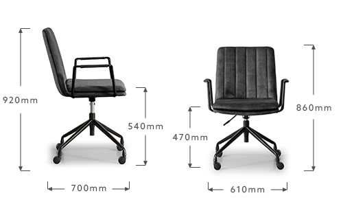The Dursley Office Chair welcomes you to a stylish yet ergonomic workspace staple. With its modern design the Dursley combines the elegance and comfort of a cushioned dining chair and the ergonomic approach found in office seating. Upholstered from premium velvet and framed in powder-coated steel, the Dursley Office Chair introduces class to your working space.