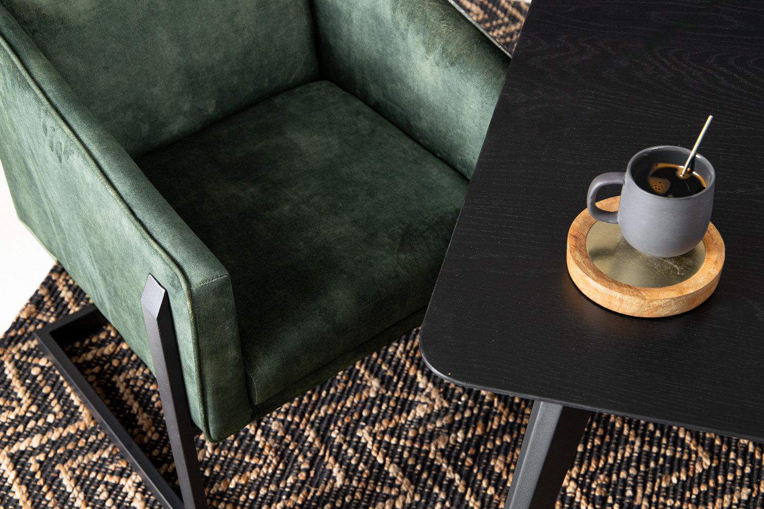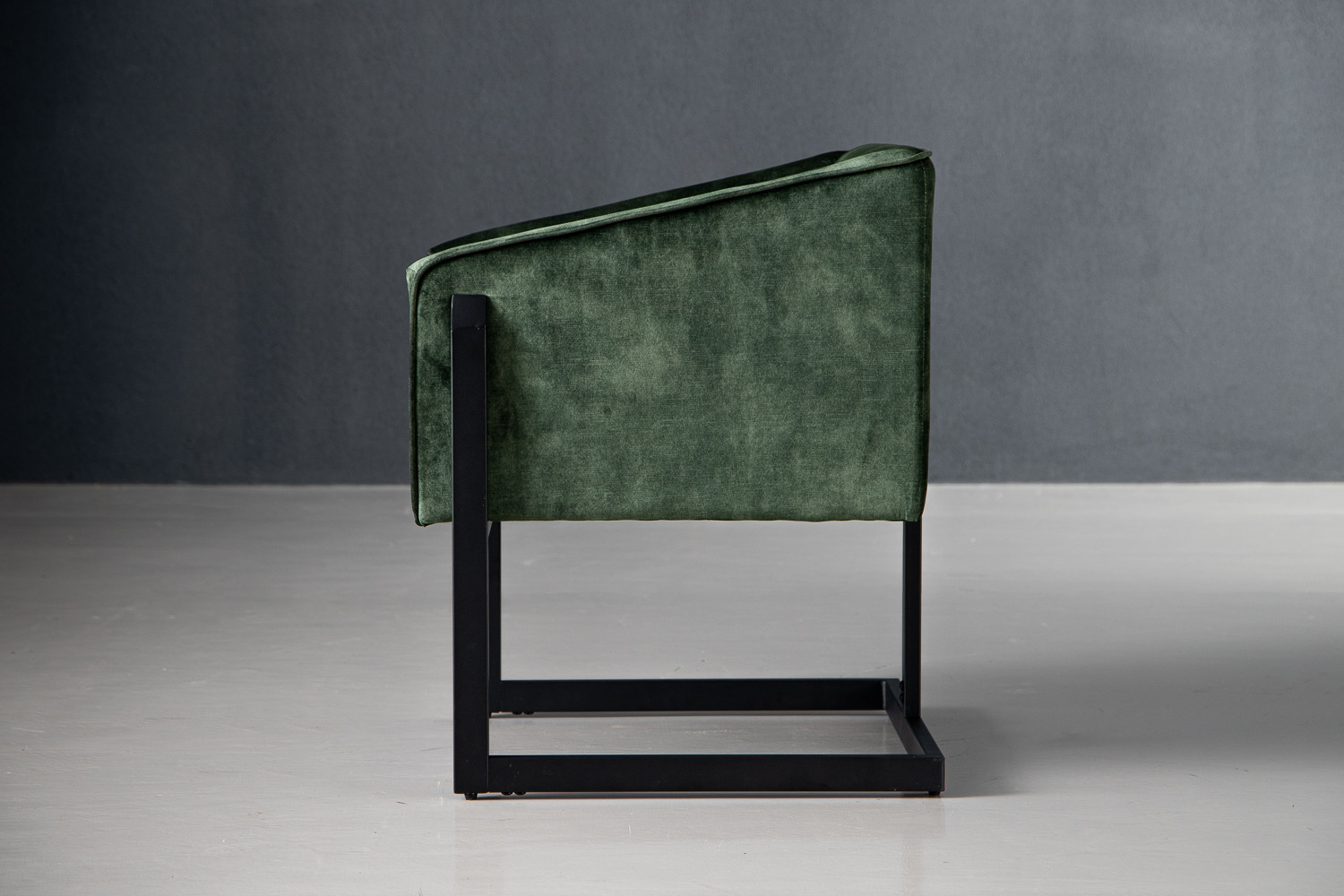 Crafted from premium polyester velvet fabric, the plush cushions offer exceptional comfort for long dinners, relaxed conversations, or quiet moments. The durable mild steel legs provide a sturdy foundation while maintaining a sleek profile that enhances the chair's modern aesthetic. The floating design gives an airy feel, perfect for creating a sense of space in compact or open-plan areas.