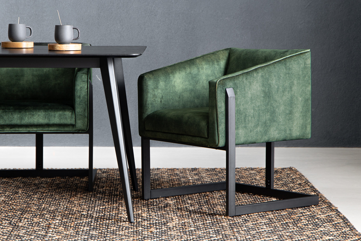 Introduce timeless elegance to your home with the Elson Dining Chair. Draped in luxurious polyester velvet fabric, its rich forest green tone makes it an iconic statement piece for any room. The chair features plush cushions for superior comfort, supported by durable mild steel legs that ensure long-lasting stability. The stylish free-floating design adds a sense of airiness, while the beautifully tucked seam stitching showcases impeccable craftsmanship. This mid-century design with post-modern inspiration blends seamlessly into living rooms, dining areas, or accent spaces.
