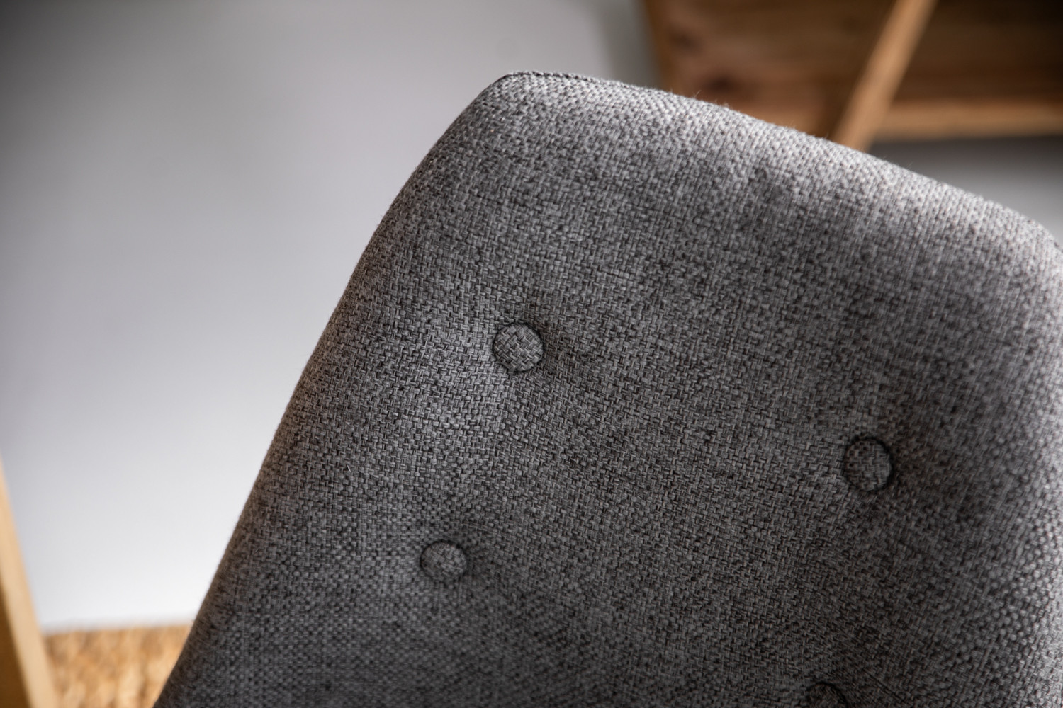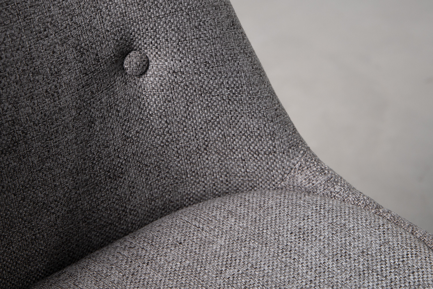 The Enzo dining chair is available in various fabric options, being high-quality stain-resistant microfibre, velvet, and polyester.
