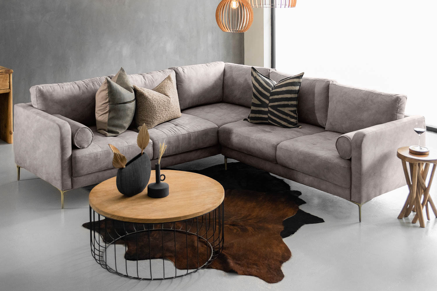Add a rich dose of colour and texture to your living space or TV room with the Hayden Corner Couch, upholstered in microfibre. This opulent corner couch features an elegant modern design, finished with distinctive stitching. The blind tufted seat cushions and tapered metal legs give the Hayden a unique character and charm.