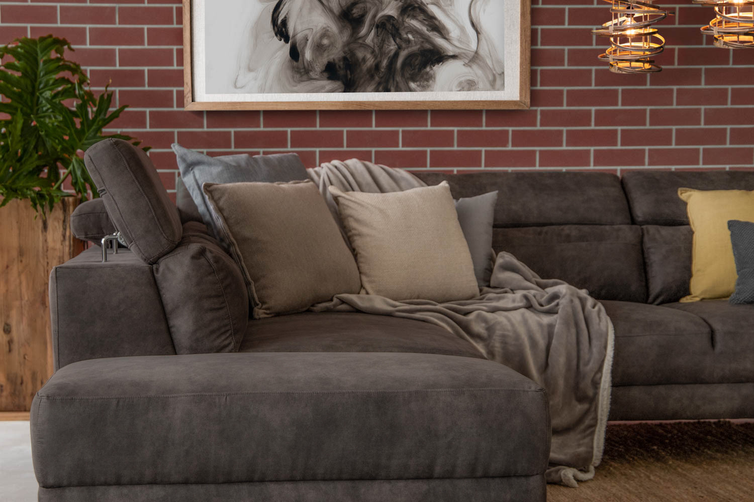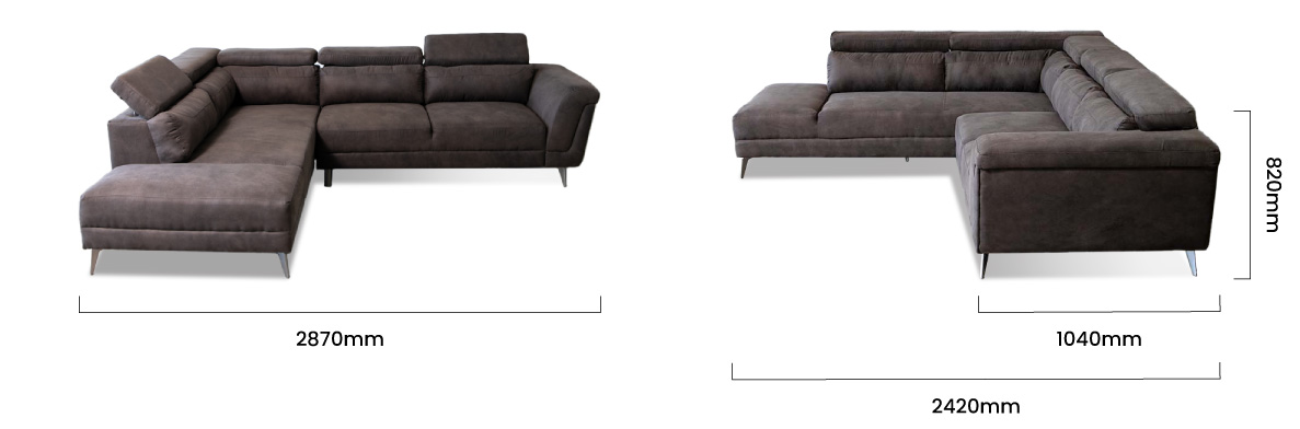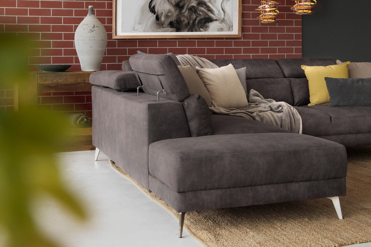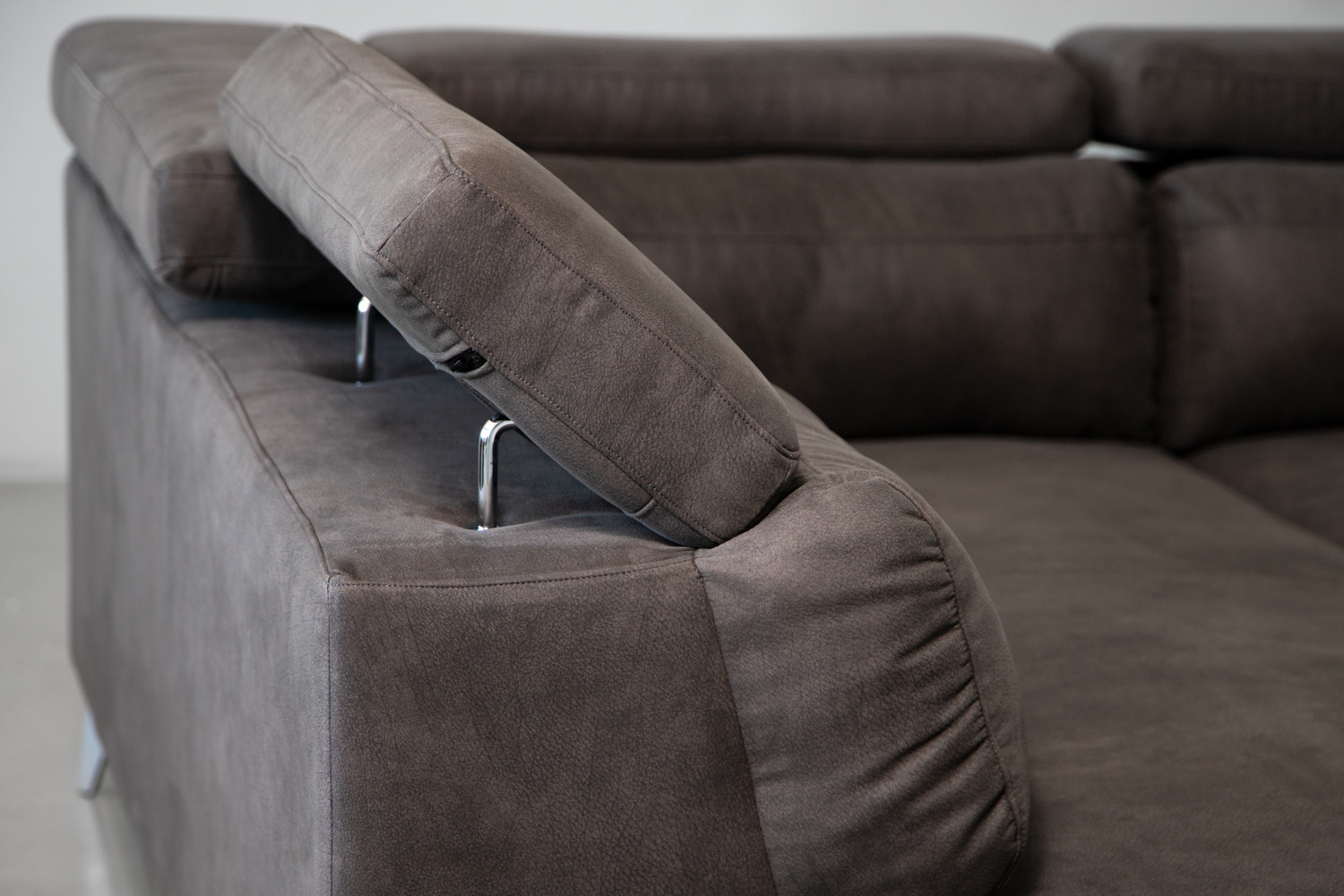 The Laurence Corner Couch is a modern, comfortable, and generously proportioned corner couch, complete with adjustable headrests. Ideal for hosting friends and family, the Laurence is upholstered in high-quality microfibre fabric for hours of luxurious seating.