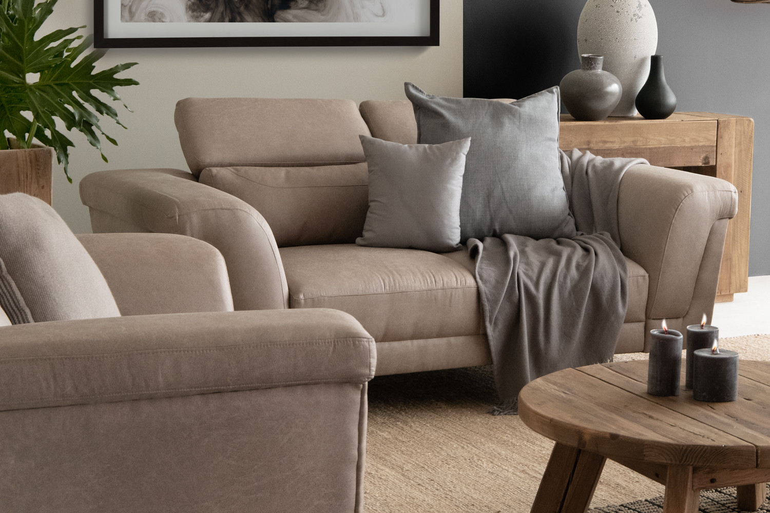 The Laurence 2 Seater Couch is a modern, comfortable, and generously proportioned couch, complete with adjustable headrests. Ideal for relaxation and rest, the Laurence is upholstered in high-quality microfibre fabric for hours of luxurious seating.