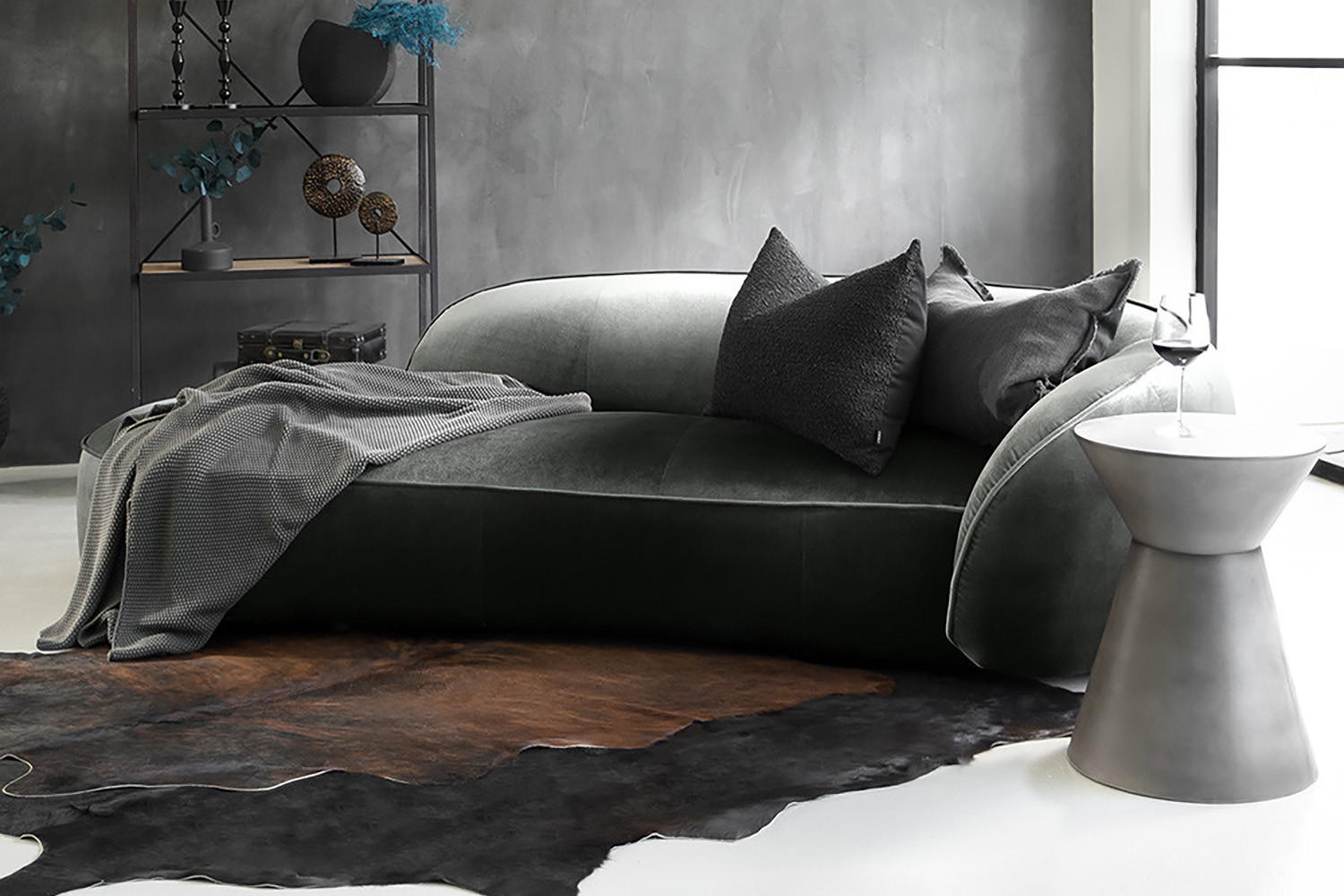 Rohan Velvet Couch - Forest Grey