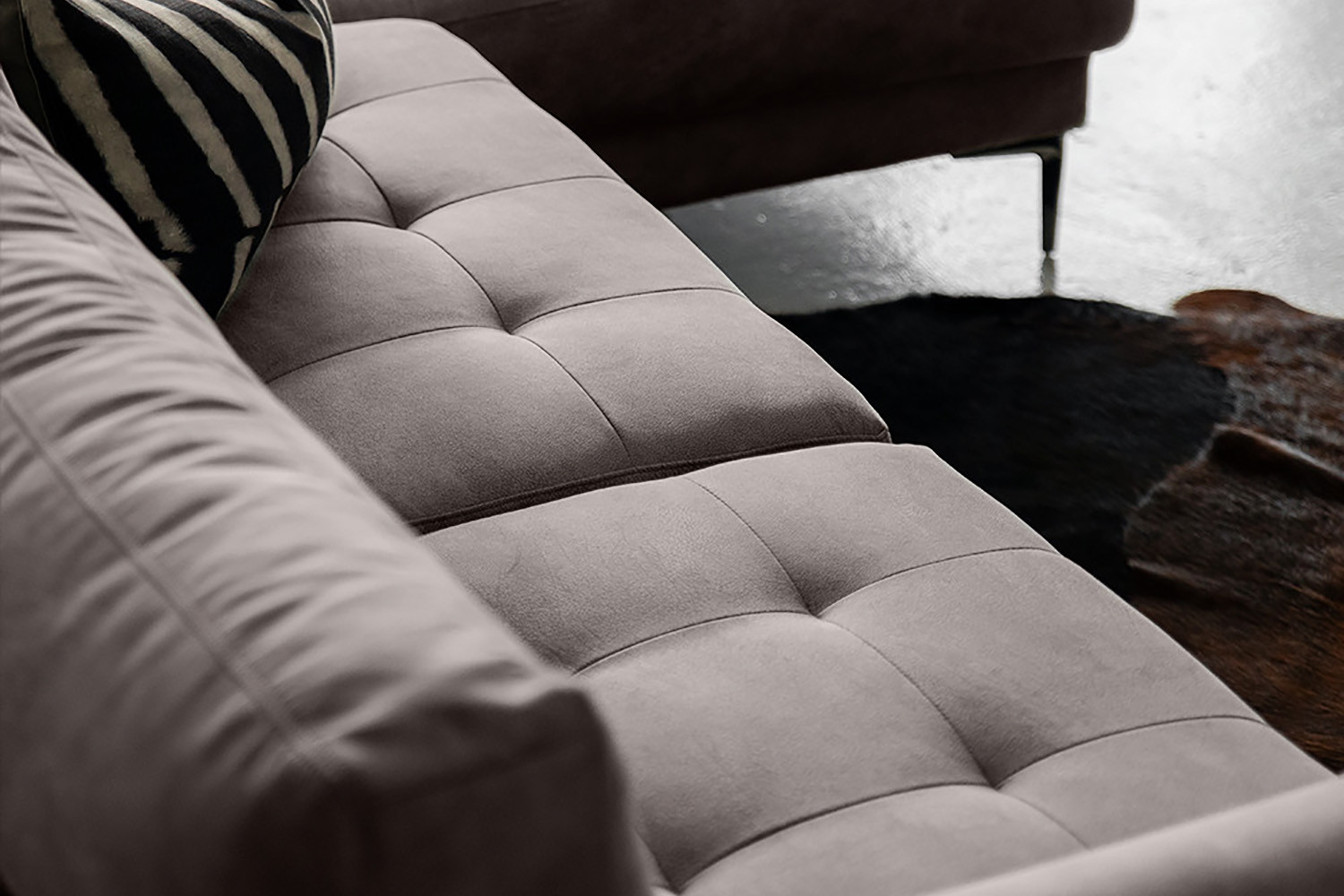 The Hayden L-shape Couch offers an ideal blend of luxury and comfort, in high-quality polyester microfibre that will add depth and richness to your space. The combination of sumptuous cushioning and luxe high-quality microfibre makes this couch an irresistible spot to kick back and relax, while sophisticated touches including stitched detailing and tufted seating make for a beautiful and timeless statement piece.
