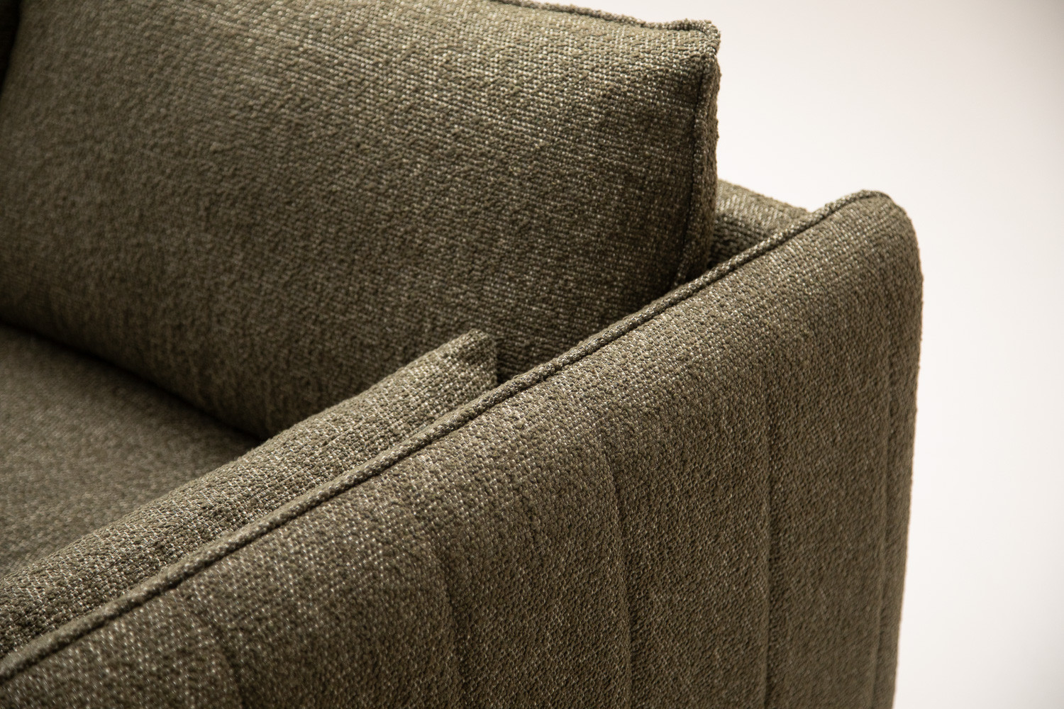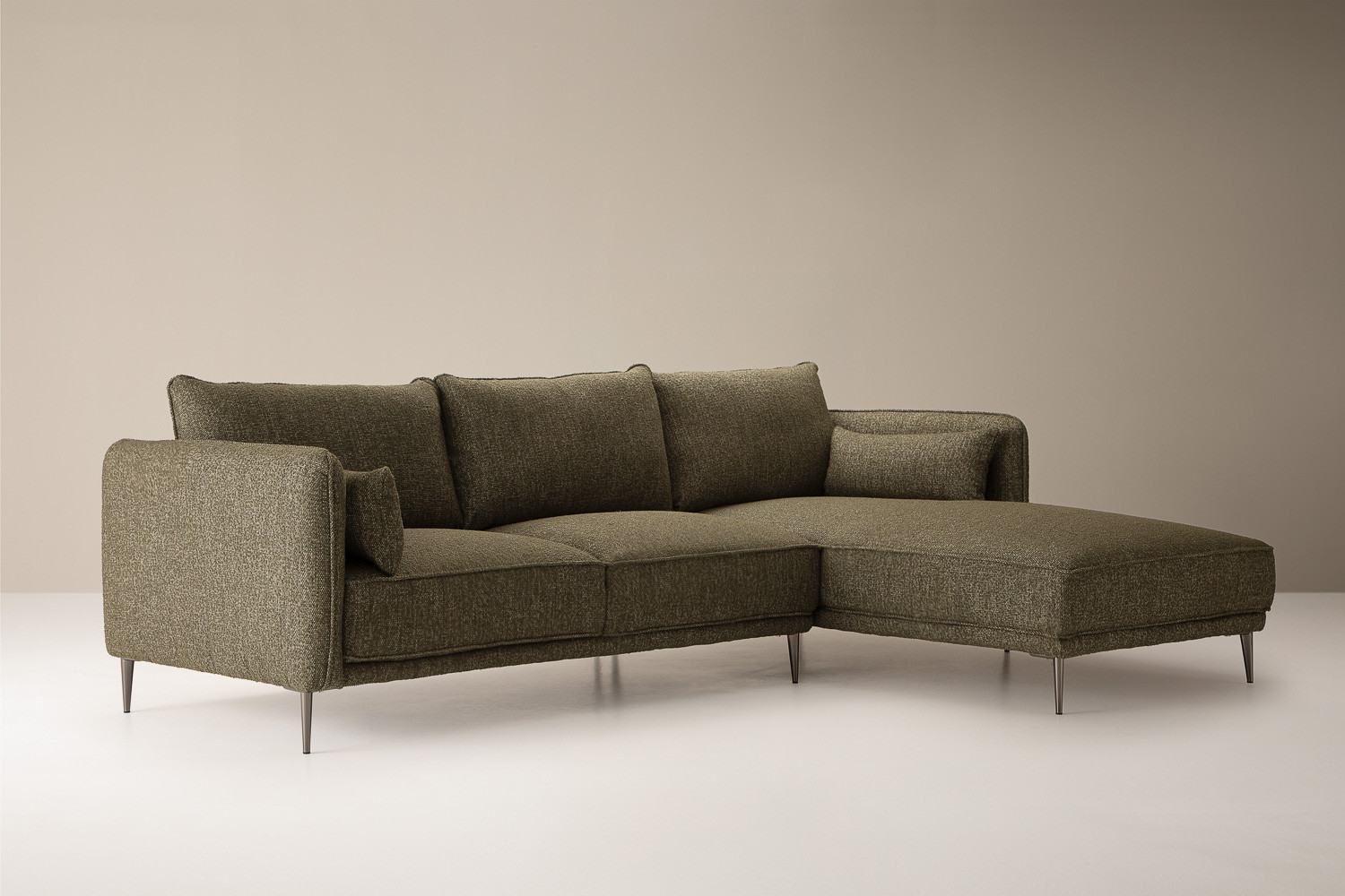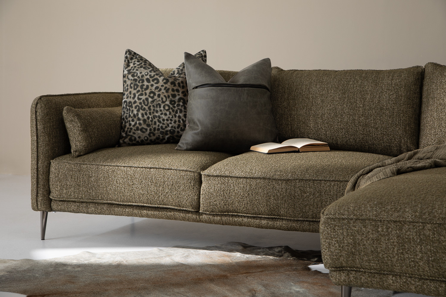 Inspire your interior with the mid-century modern elegance of the Ottavia L-Shape Couch. With its subtle green tones and vintage texture, this generously proportioned design makes an ideal statement piece, adding unparalleled style and luxurious comfort to your living space. Sink back into plush cushioning, put your feet up, and enjoy the Ottavia’s soft embrace.