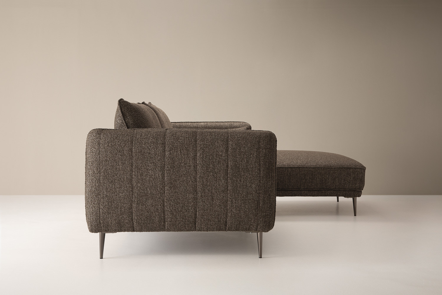 With its modern design, this sleek and well-proportioned corner unit emphasises easy comfort and clean lines for a simple yet stylish look. High-quality upholstery adds a luxurious finish, with tapered metal feet perfectly contrasting and balancing the design overall.