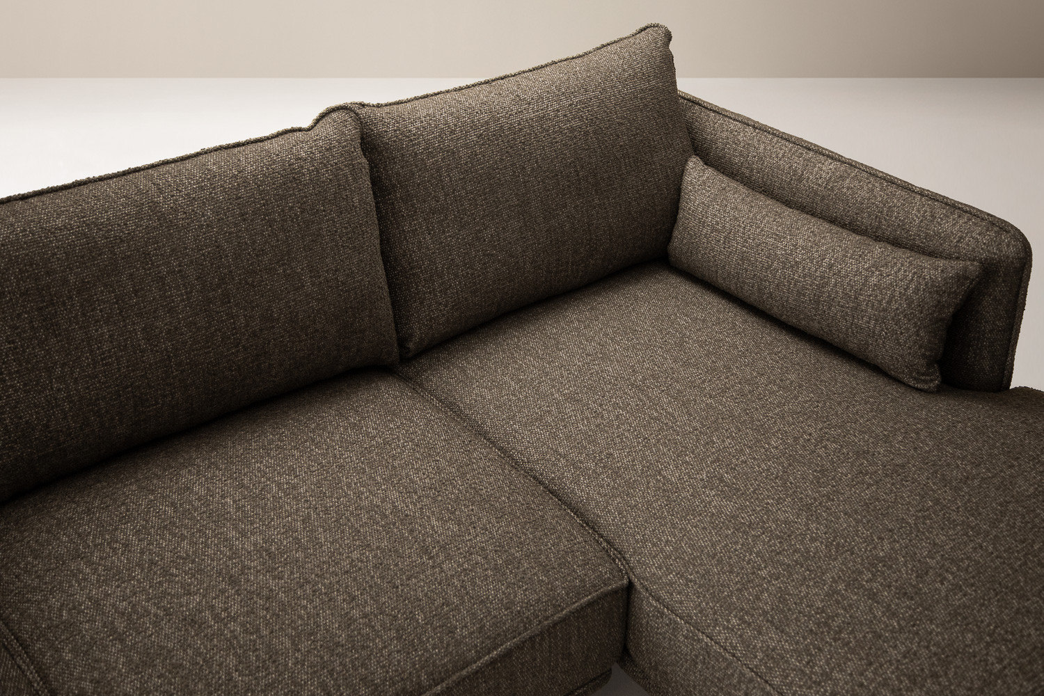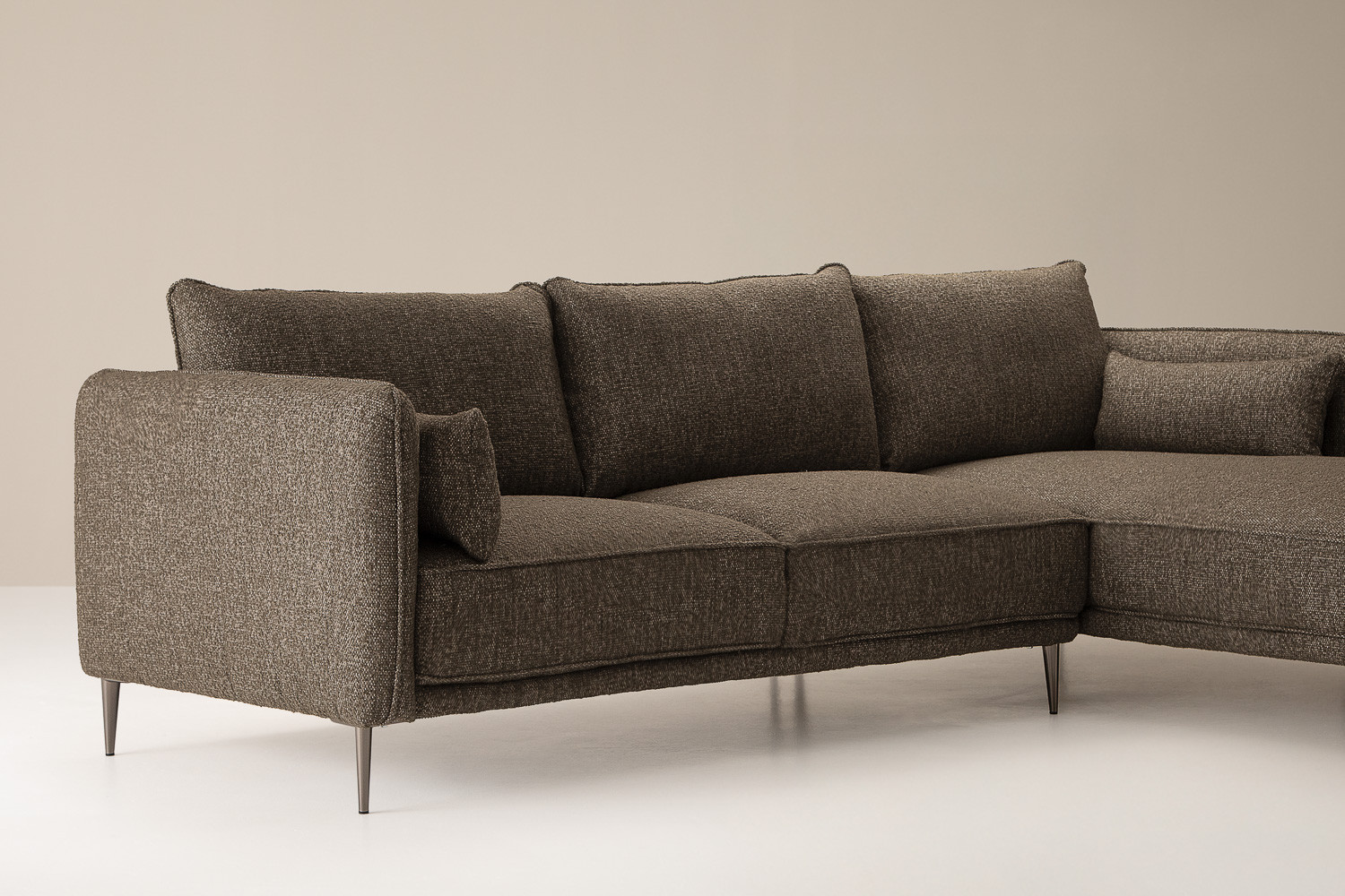 Inspire your interior with the mid-century modern elegance of the Ottavia L-Shape Couch. With its rich brown tones and vintage texture, this generously proportioned design makes an ideal statement piece, adding unparalleled style and luxurious comfort to your living space. Sink back into plush cushioning, put your feet up, and enjoy the Ottavia’s soft embrace.