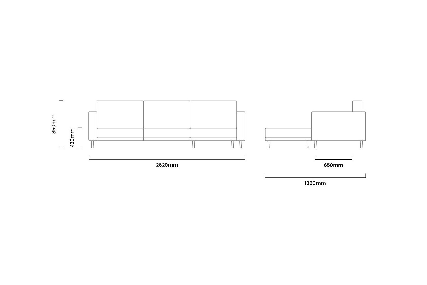 2620mm (L) x 1860mm (W) x 850mm (H) | Seat Height - 420mm | Seat Depth - 650mm