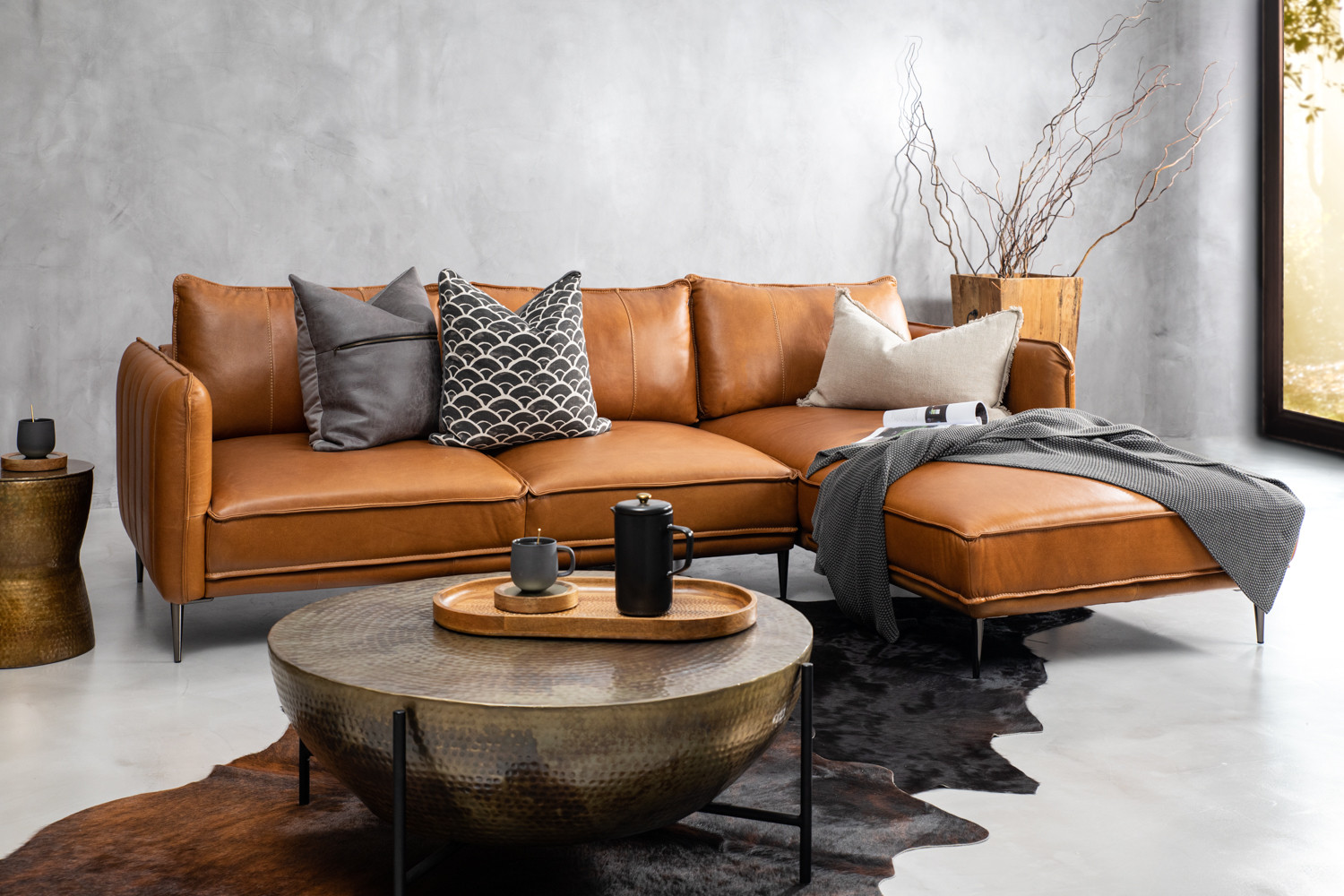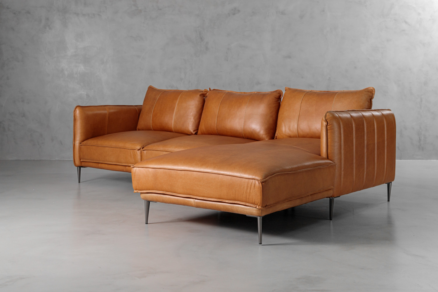 Add a bold Mid-century modern elegance to your space with the Ottavia L-Shape Leather Couch. This ample L-Shape is full of personality, with its classic full grain leather texture, making it a natural statement piece to add visual ‘zing’ and luxurious comfort to your living space.
