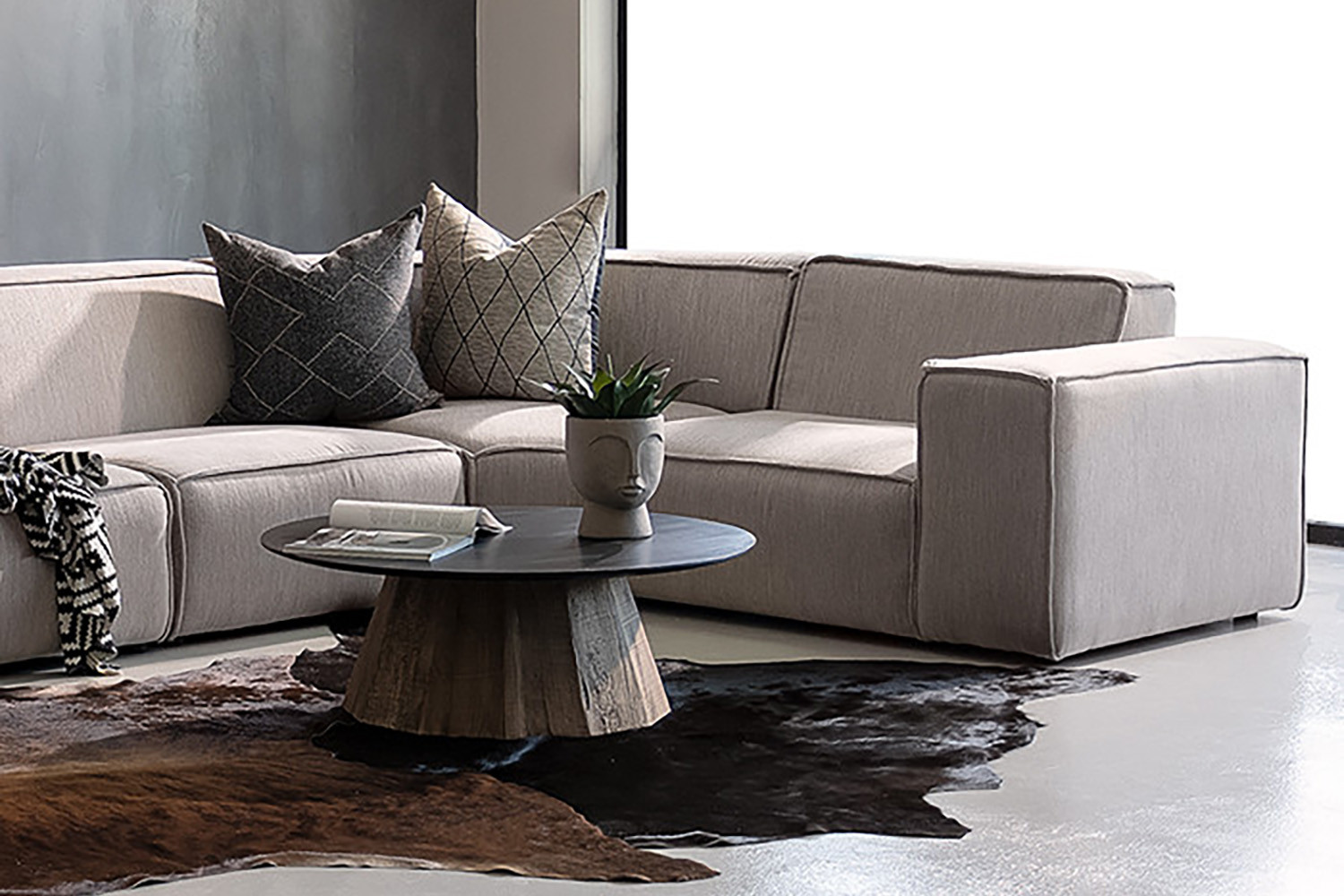The Jagger Modular Grand Corner Set boasts a bold contemporary design with a square-like silhouette, keeping the design simple but striking. With plenty of style and space, the Jagger is upholstered with luxurious fabric, finished with reverse stitched seams. This couch is the ideal furniture piece for any contemporary home.